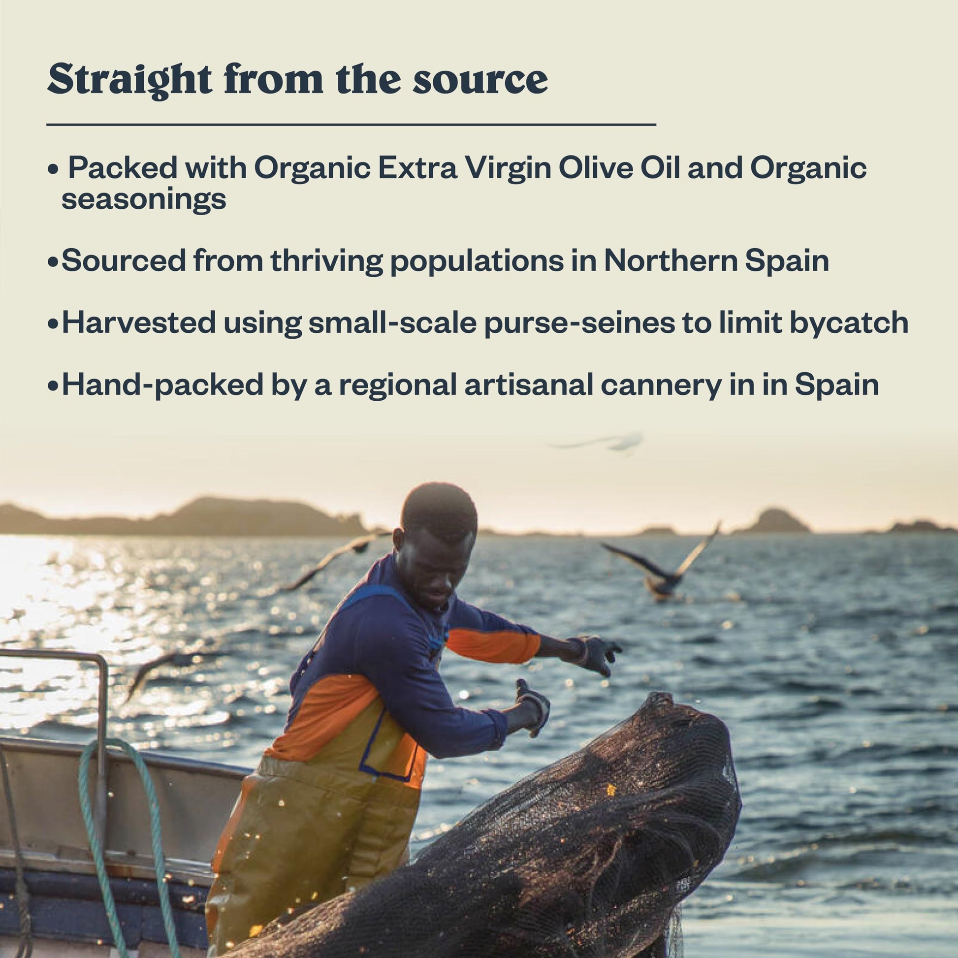 Our Spanish White Anchovies are responsibly harvested from thriving populations in the Bay of Biscay, Spain. They are packed in 100% recyclable BPA-NI cans by a family-owned B-corp cannery in Galicia, ensuring sustainability and quality. With 21 grams of protein per tin, these anchovies are an excellent source of protein, omega-3 fatty acids, calcium, and vitamin B-12. Enjoy them straight from the can, or use them to enhance salads, pastas, and sandwiches. The gentle seasoning allows for versatile culinary applications, making them a convenient addition to any kitchen.