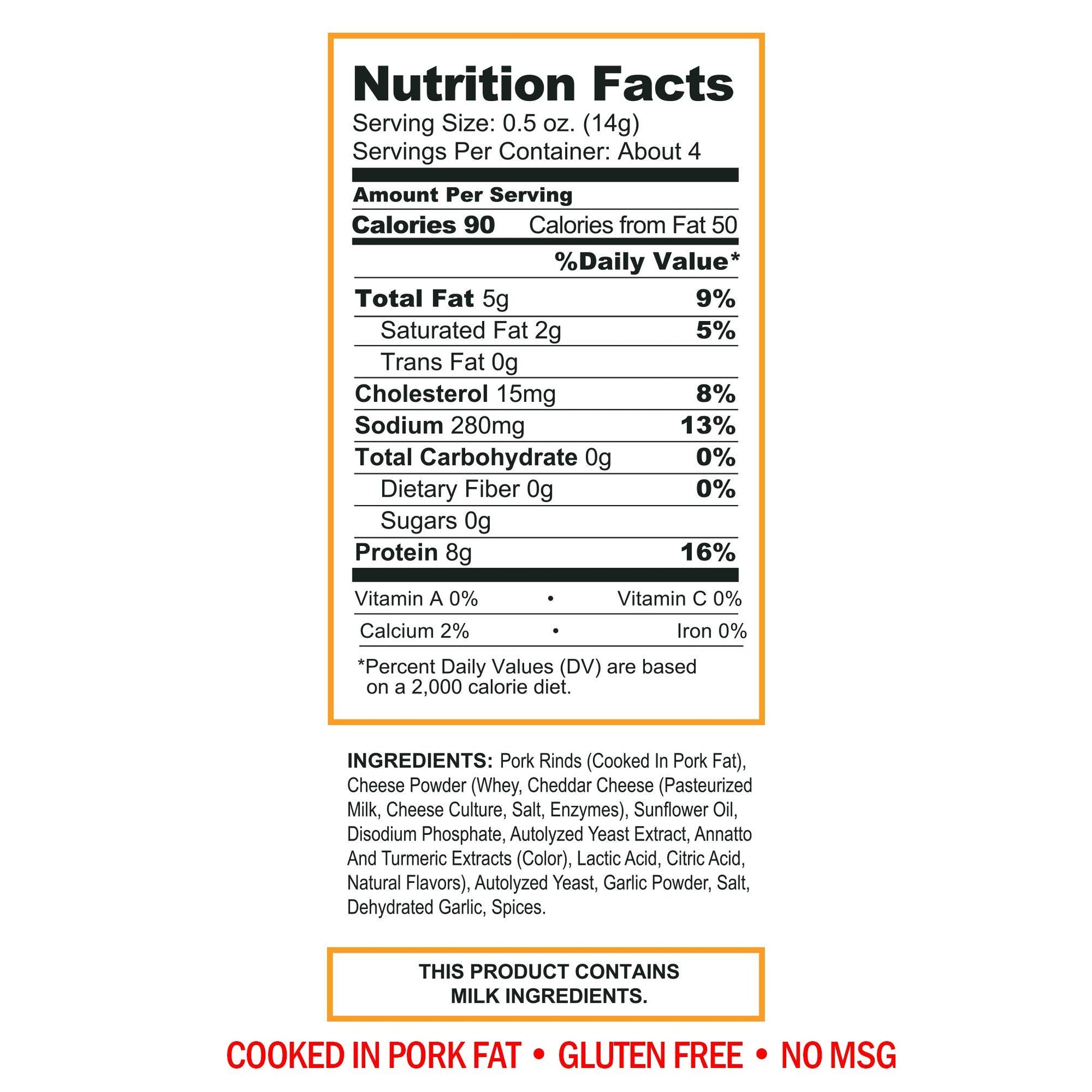 - Q: Can children enjoy Pork King Good Nacho Cheddar Pork Rinds? A: Absolutely! Pork King Good Nacho Cheddar Pork Rinds are a great alternative to traditional potato chips and can be enjoyed by children, especially since they are a sugar-free snack option and fit well into various dietary needs.