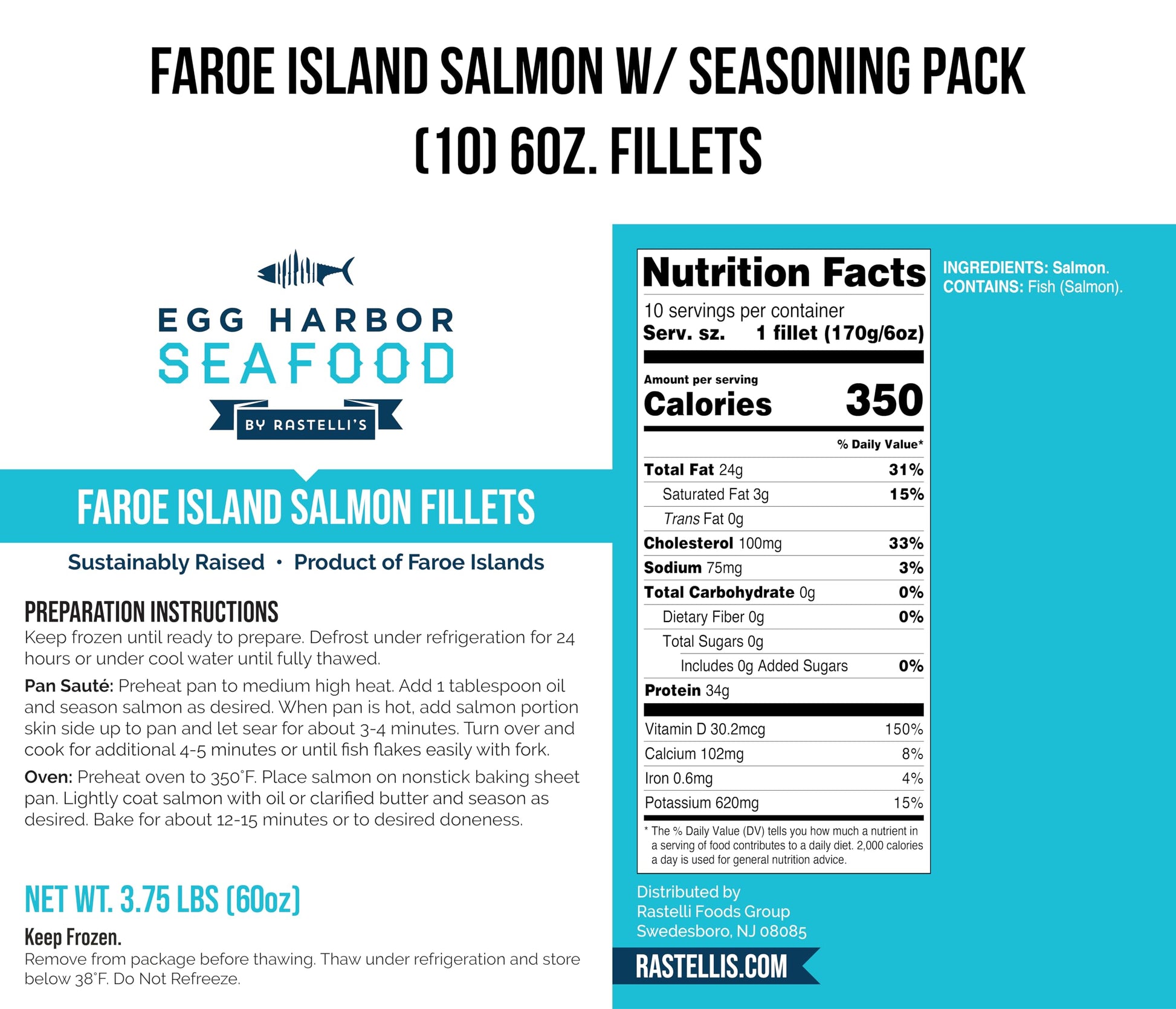 - Q: What is the recommended way to cook Rastelli's Faroe Island Salmon? A: To cook Rastelli's Faroe Island Salmon, simply defrost the fillets, prepare them to your liking, and then bake, grill, or pan-sear for a delicious meal.