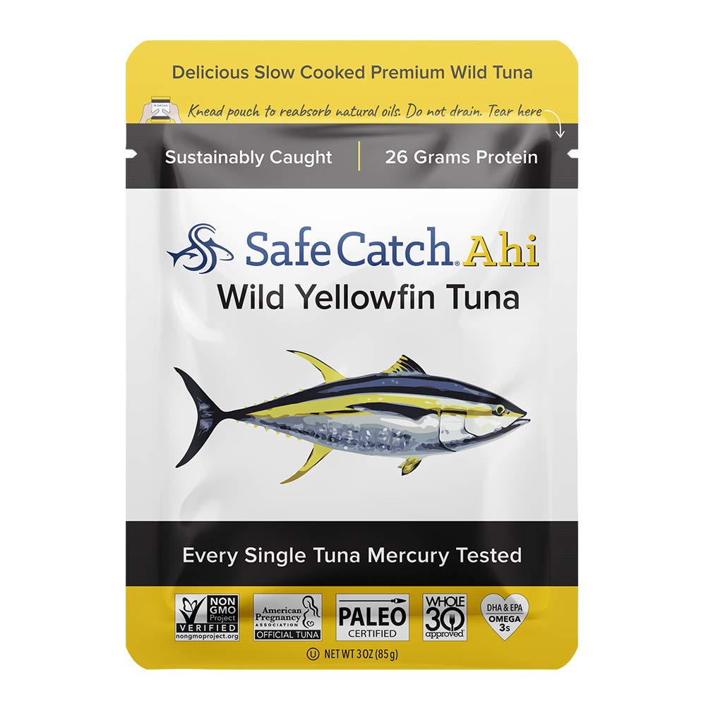 Q: What are the nutritional benefits of Safe Catch Ahi Tuna?A: Each 3 oz pouch of Safe Catch Ahi Tuna contains 26 grams of protein, making it a high-protein food option. It is also gluten-free and suitable for various diets such as Paleo, Keto, and Whole30.