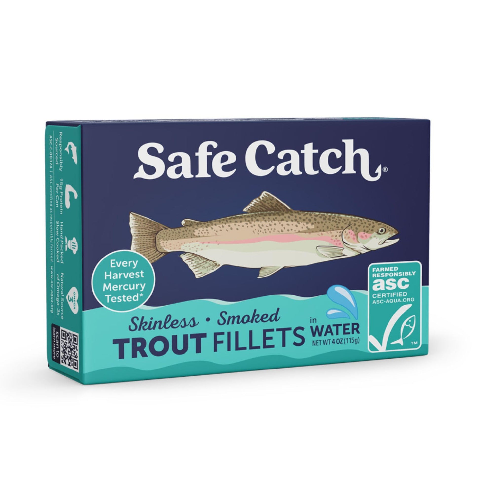 - Q: What are the nutritional benefits of Safe Catch Smoked Trout? A: Each can of Safe Catch Smoked Trout contains fifteen grams of protein and serves as a natural source of Omega-3 fatty acids, with an average of over six hundred and fifty milligrams of DHA and EPA Omega-3s, contributing to a healthy diet.