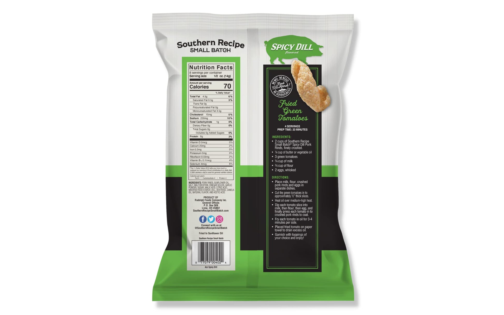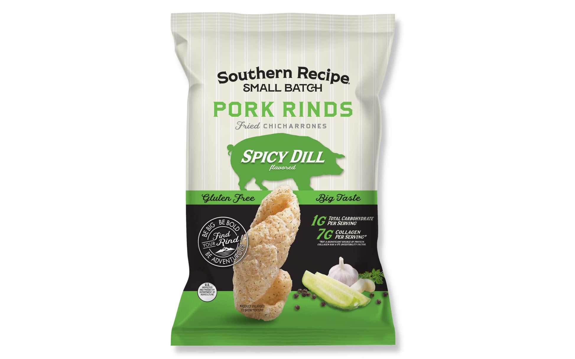 - Q: What flavor profile do Southern Recipe Small Batch Pork Rinds have? A: These pork rinds feature a unique and carefully crafted flavor profile that combines dill, garlic, vinegar, and a hint of heat, making them a flavorful snack option that stands out from traditional pork rinds.