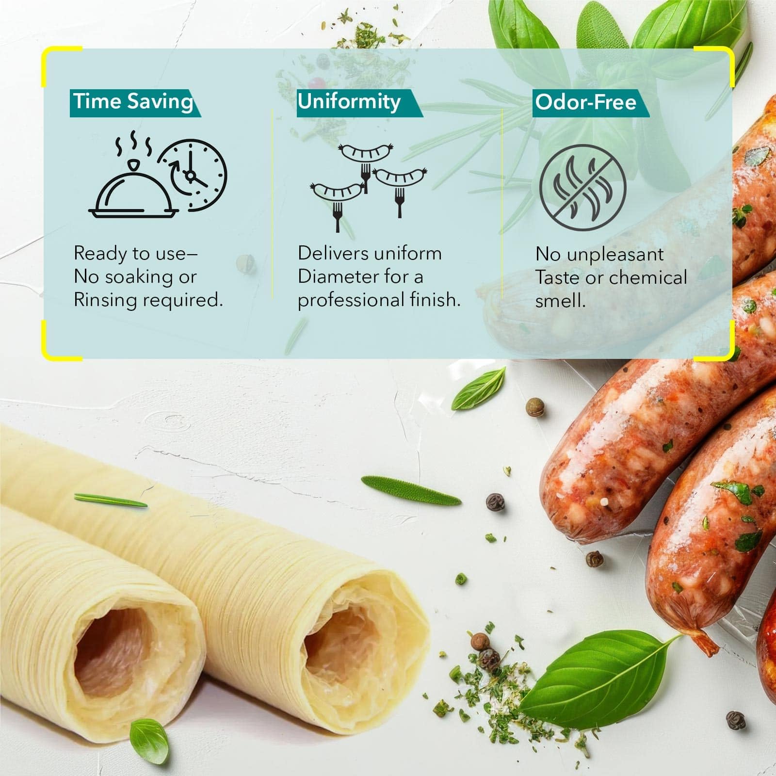 - No Soaking Required: These casings are ready to use without the need for soaking or rinsing; rehydration occurs naturally during cooking.