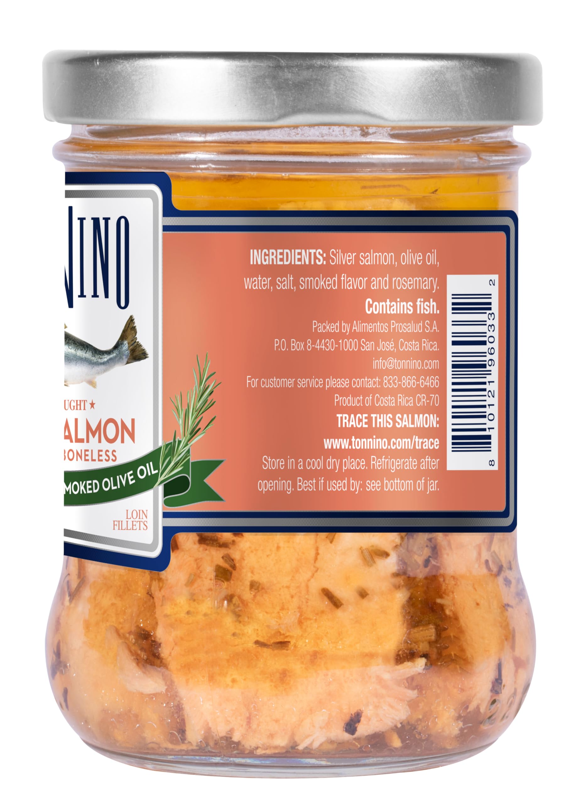 - Q: How much does each jar of Tonnino Salmon Silver Fish weigh? A: Each jar of Tonnino Salmon Silver Fish contains six point three ounces of product, packaged as a pack of six jars.