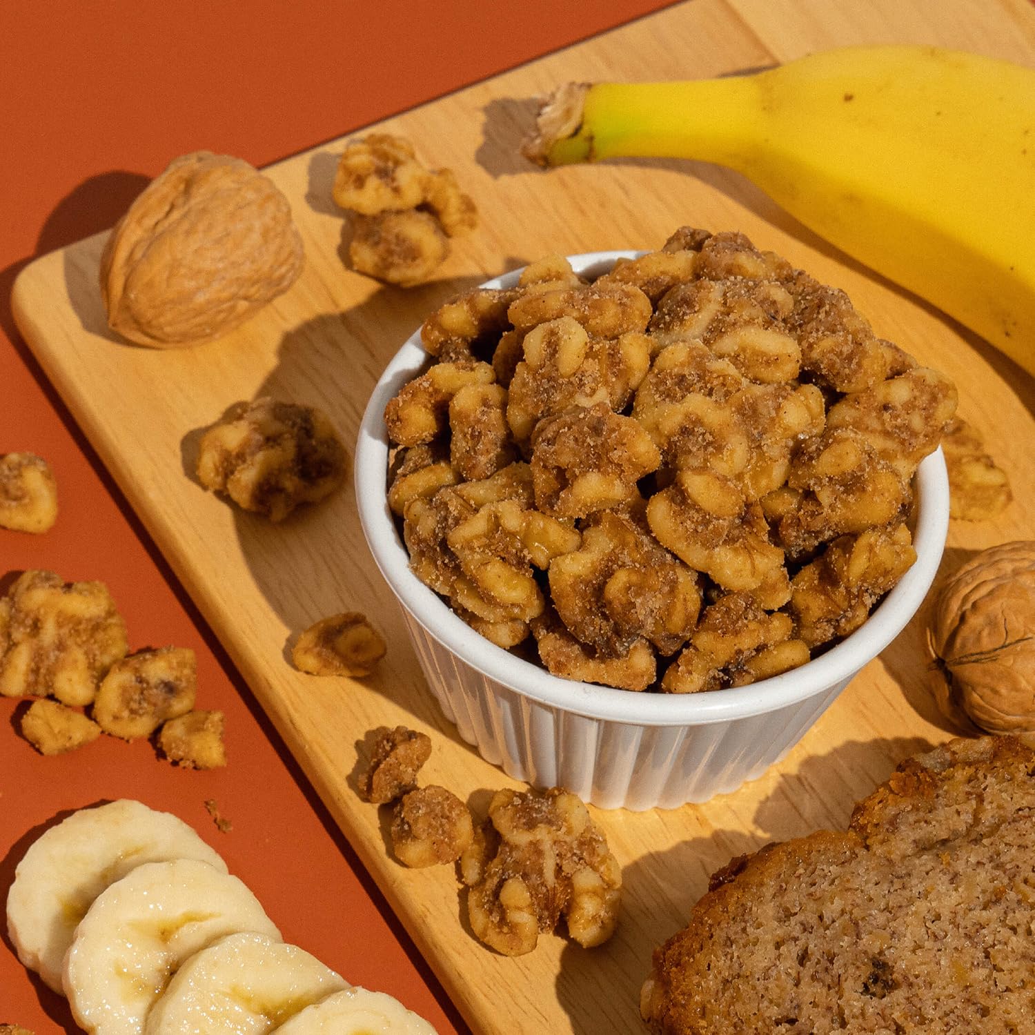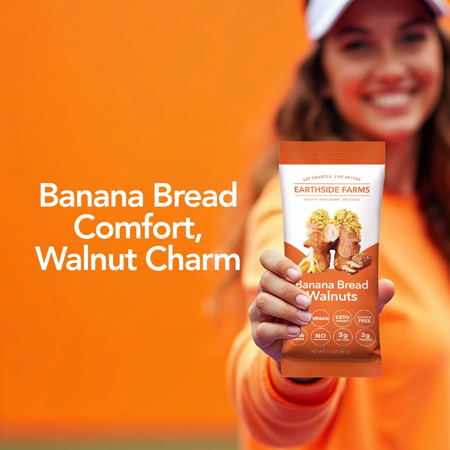 Q: What are the main ingredients in Earthside Farms Banana Bread Walnuts?A: Earthside Farms Banana Bread Walnuts are made with high-quality walnuts flavored with the irresistible taste of banana bread. They are crafted to provide a healthy snack option while maintaining a delightful sweet flavor.