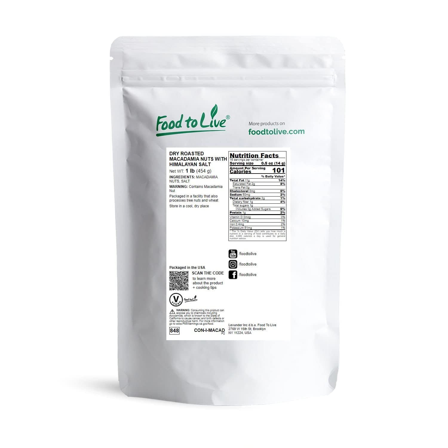- Q: What makes these macadamia nuts different from raw unsalted nuts? A: Unlike raw unsalted macadamia nuts, Food to Live Dry Roasted Macadamia Nuts are oven-roasted without oil, enhancing their flavor and texture while retaining most of their nutritional value, including higher mineral content due to being lightly salted with Himalayan Pink Salt.