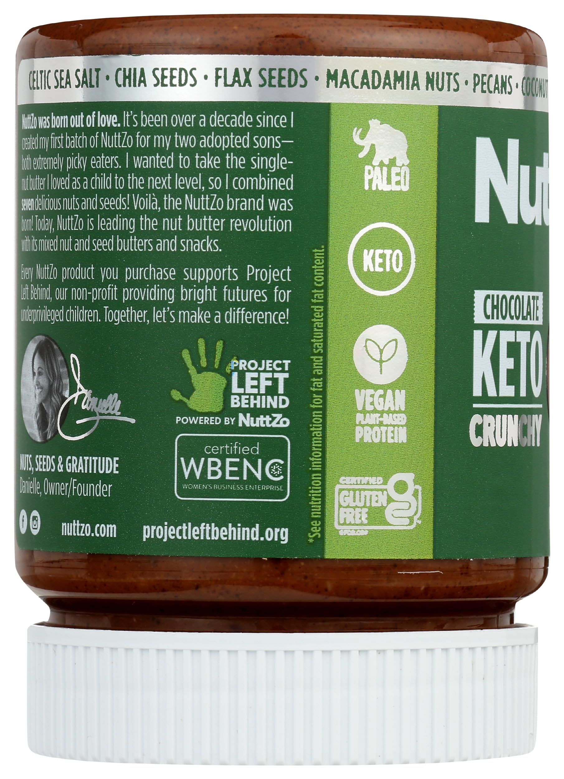 Indulgent! Try NuttZos chocolate spread ideal for a low-carb and low sugar lifestyle! Youll love this rich chocolate 7 nut and seed butter with hints of coconut and rich pecan - perfect for breakfasts, baking, paired with fruit, smoothies, or right out of the jar! No added oils or preservatives.