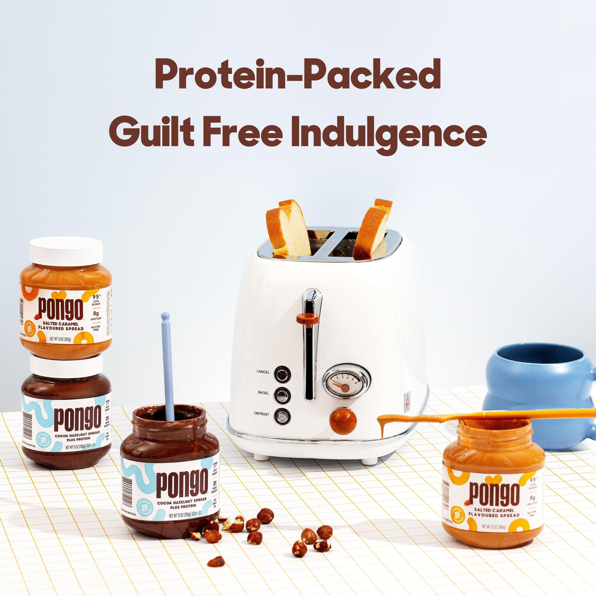 - Q: What is the size and packaging of Pongo High Protein Cocoa Hazelnut Spread? A: Pongo High Protein Cocoa Hazelnut Spread comes in a 13-ounce jar, and this product is available in a convenient 2-pack, perfect for stocking up or sharing.