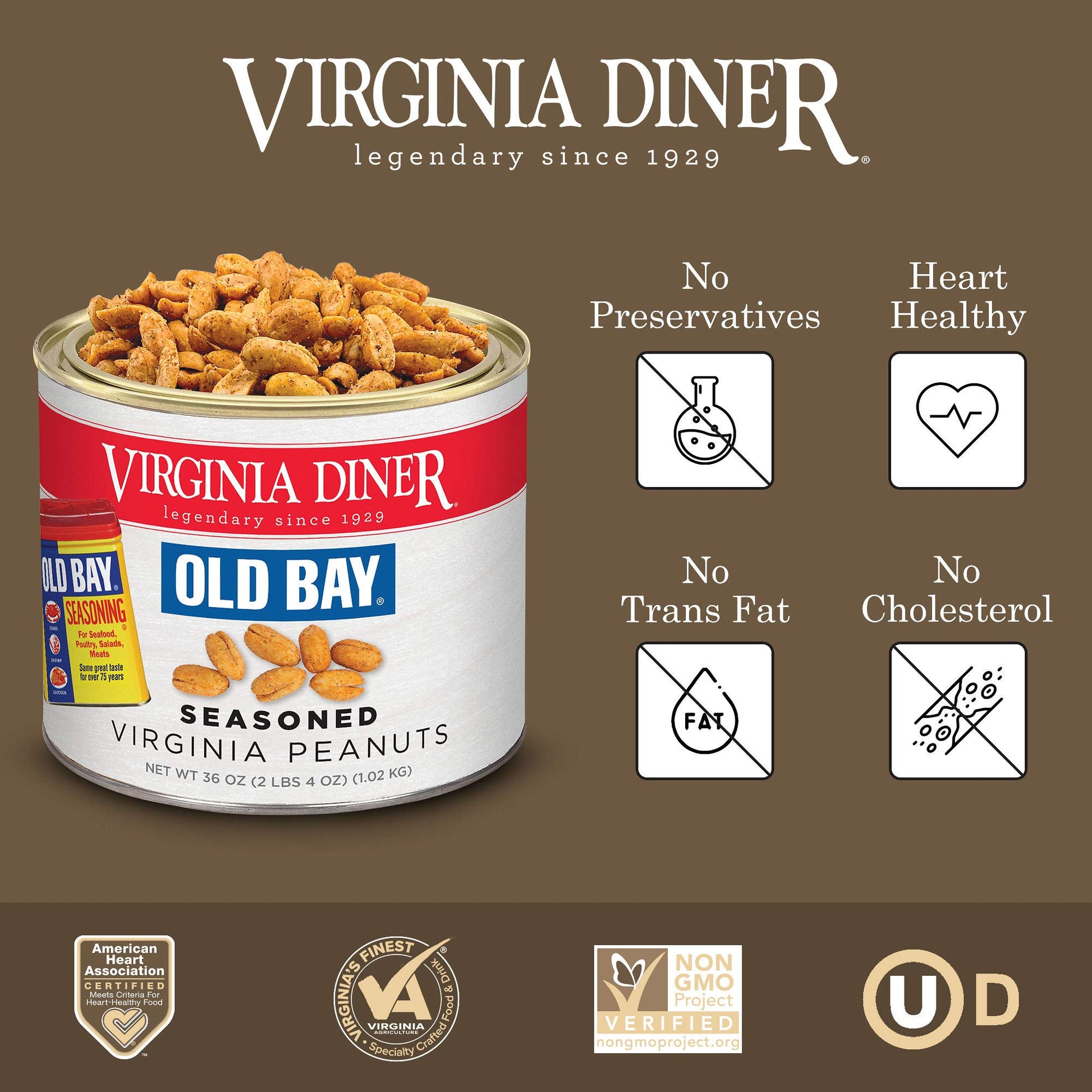 - Q: Are these peanuts gluten-free and suitable for a healthy diet? A: Yes, Virginia Diner Old Bay Seasoned Peanuts are gluten-free and made with all-natural, Non-GMO oil. They are a nutritious snack option, containing about 7 grams of plant-based protein per serving, making them a great addition to a heart-healthy diet.