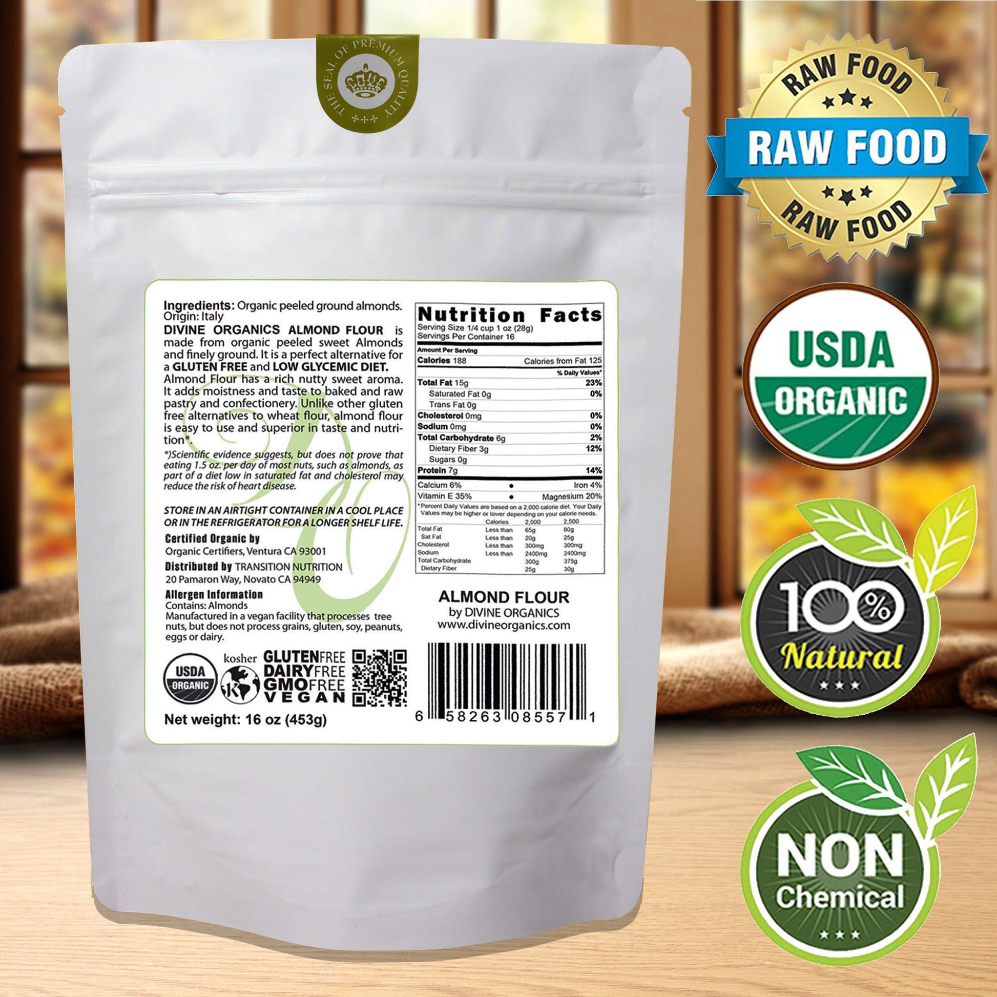 Q: What is almond flour and how is it made?A: Almond flour is a gluten-free flour made from finely ground organic peeled sweet almonds. It is a nutritious alternative to traditional wheat flour, providing a rich nutty flavor and moist texture in baked goods.