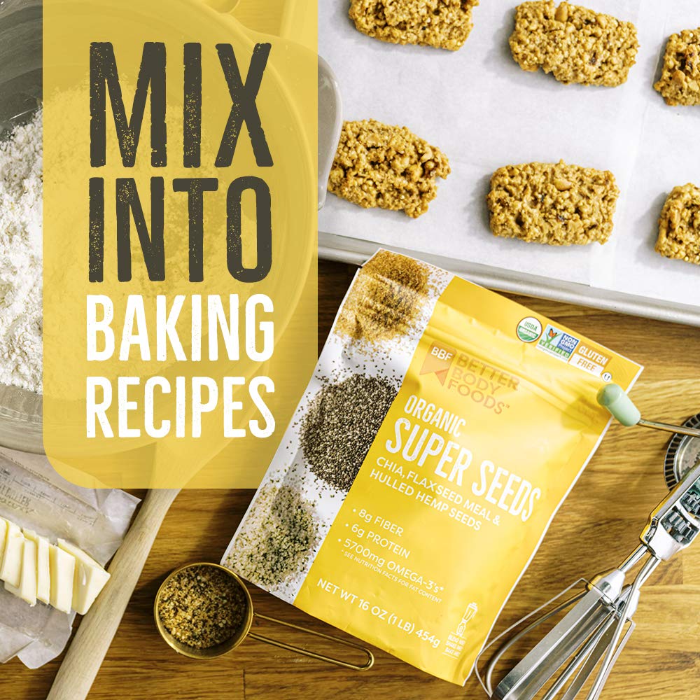 - Q: What are the health benefits of BetterBody Foods Superfood Organic Super Seeds? A: BetterBody Foods Superfood Organic Super Seeds provide a rich source of fiber, delivering 30% of your daily value per serving. They also contain 5,700mg of Omega-3 fatty acids and all nine essential amino acids, making them an excellent addition to your diet for improved digestive health and heart support.