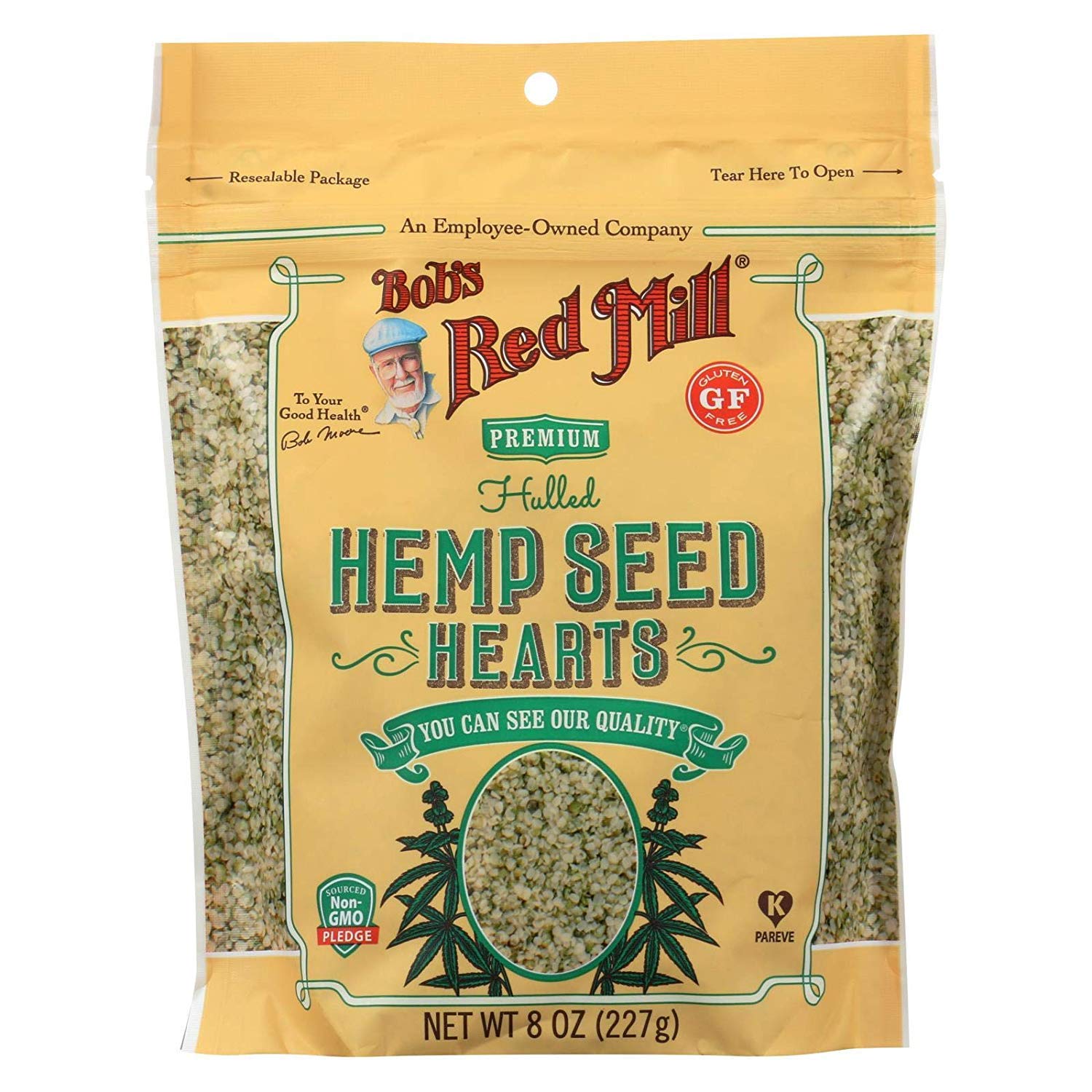 Enjoy a plant-powered boost in every meal with Bobs Red Mill Hulled Hemp Seed Hearts. These gorgeous green and cream colored seeds are packed with nutritional benefits. Each serving contains 2,090 mg of omega-3 and 6,800 mg of omega-6 essential fatty acids, not to mention 10 grams of high quality plant protein. Our hemp seed hearts offer a mildly nutty taste and creamy texture that blends wonderfully in savory and sweet foods. Easy to mix into a quick and delicious snack and a tasty addition to yogurt, hot cereal, pancakes and baked goods. Deliciously simple and naturally nutritious, our Hulled Hemp Seed Hearts are an excellent way to nourish your day.