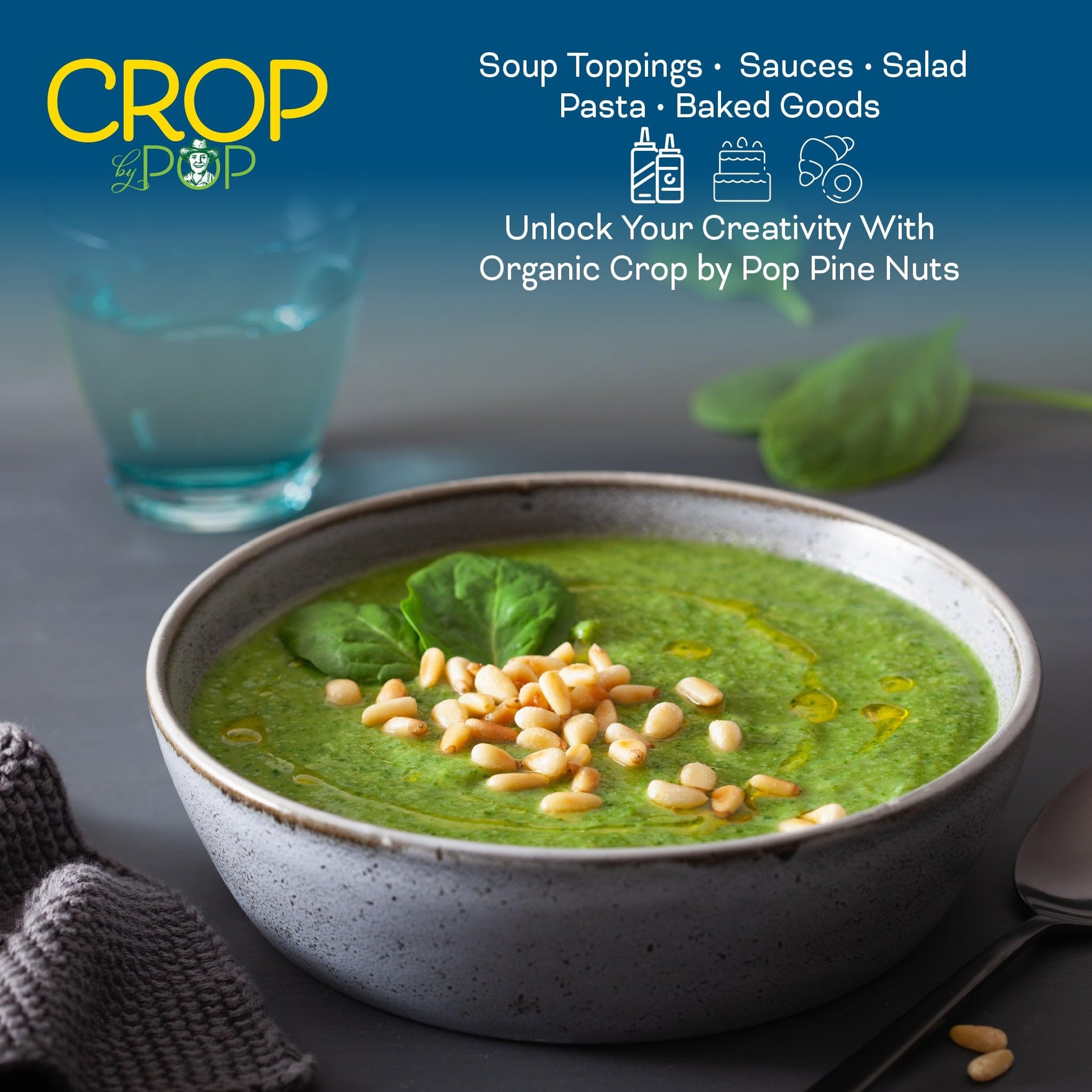 - Q: What is the packaging size of the CROP BY POP pine nuts? A: CROP BY POP Organic Raw Pine Nuts come in a convenient 6-ounce resealable bag. This packaging is designed for easy storage and usage, allowing you to portion out the nuts for individual recipes or snacks.