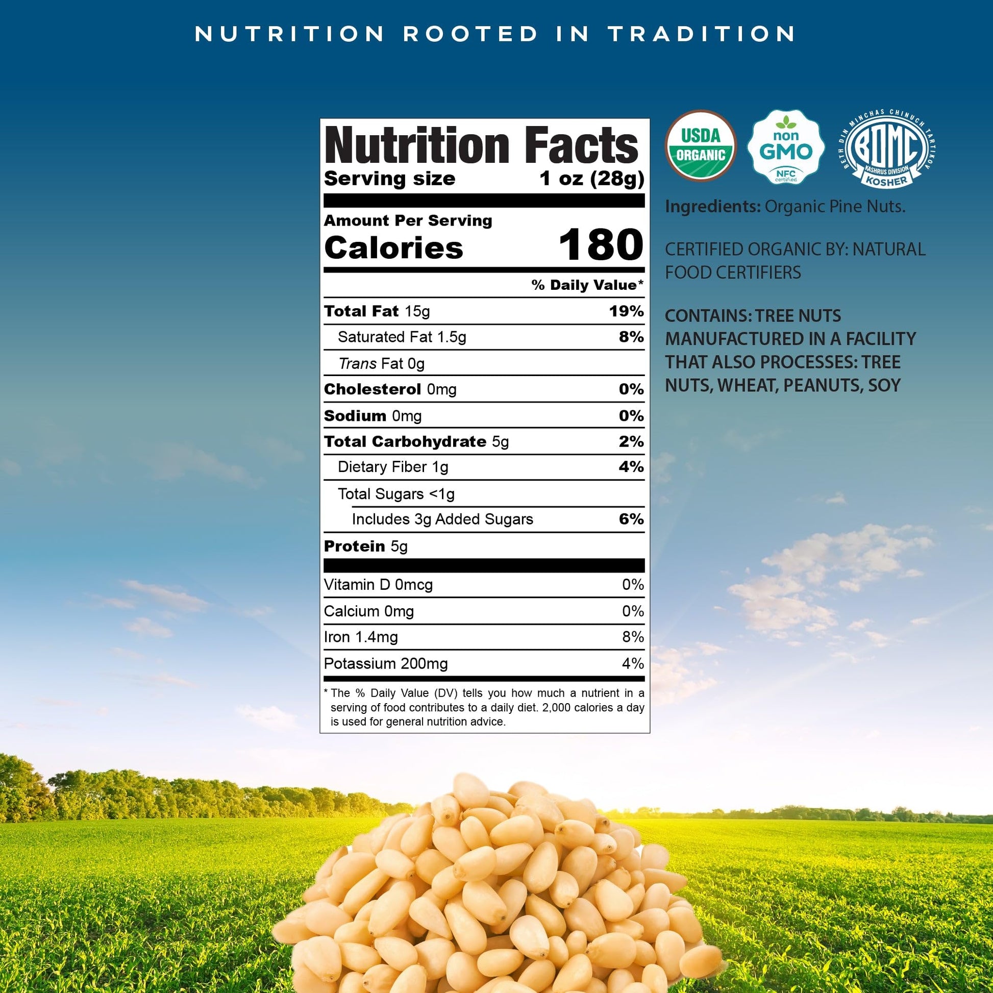 - Q: Are these pine nuts suitable for various dietary preferences? A: Absolutely! CROP BY POP Organic Raw Pine Nuts are USDA Organic, non-GMO certified, vegan, and kosher, making them suitable for a wide range of dietary preferences and lifestyles.