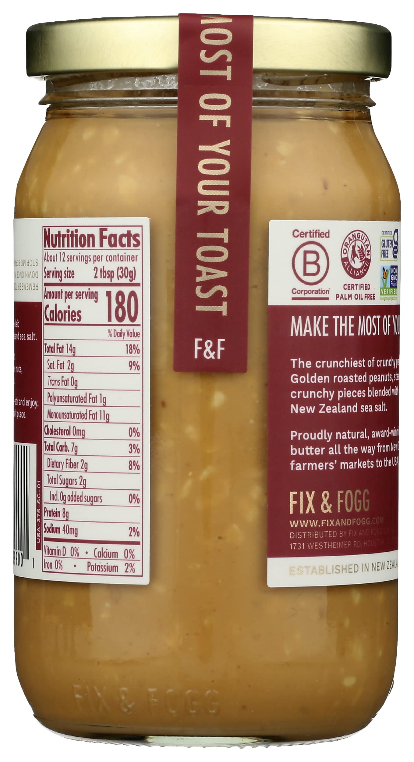 - Q: What makes Fix and Fogg Super Crunchy Peanut Butter unique? A: Fix and Fogg Super Crunchy Peanut Butter stands out due to its rich, crunchy texture and the use of non-GMO ingredients, providing a delicious and wholesome spread that enhances your snacks and meals.
