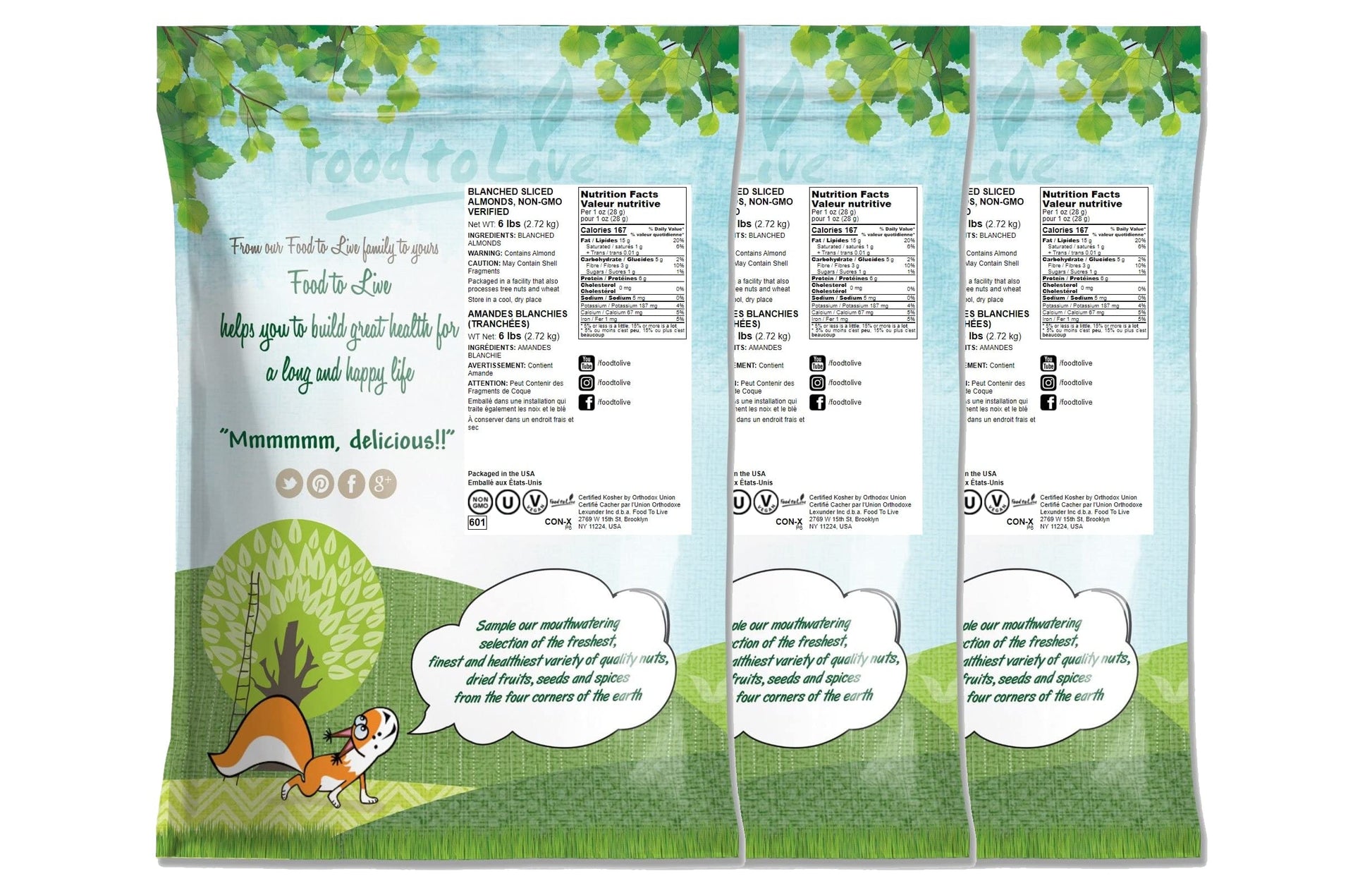 Q: What are the nutritional benefits of Food to Live Blanched Sliced Almonds?A: Food to Live Blanched Sliced Almonds are rich in essential nutrients such as Vitamin E, riboflavin, calcium, and iron. These nutrients contribute to overall health, supporting heart health, skin health, and bone strength.