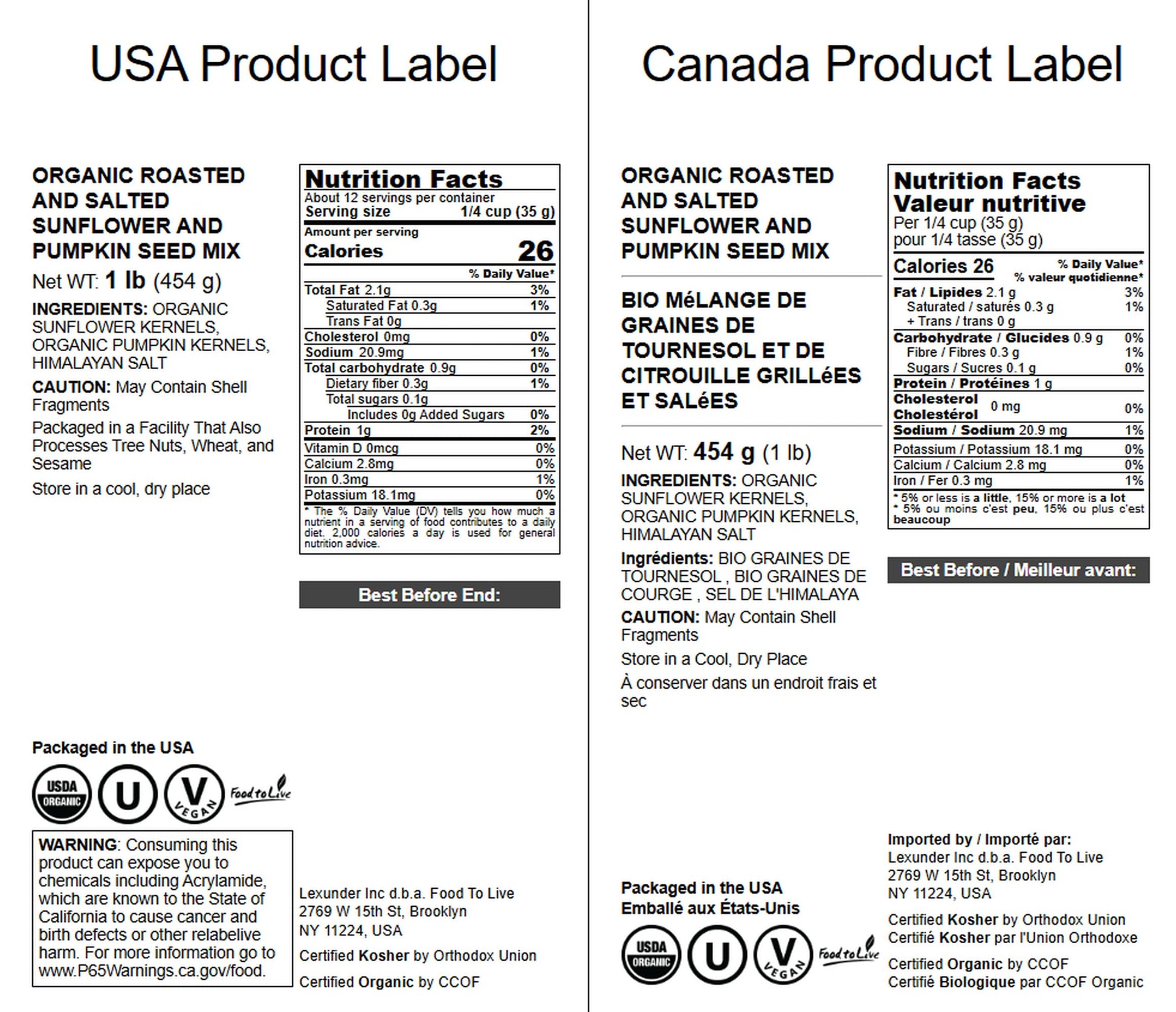 - Q: What is the best way to store this seed mix? A: To maintain freshness, store the Organic Roasted and Salted Sunflower and Pumpkin Seed Mix in a cool, dry place, ideally in an airtight container. This will help preserve its crunchy texture and flavor. For longer shelf life, you can also refrigerate or freeze the mix.