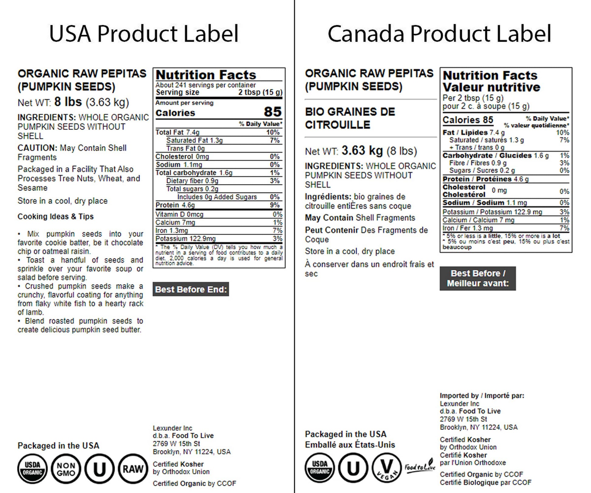 Q: Can I eat these pumpkin seeds raw or do they need to be cooked?A: Yes, you can enjoy Food to Live pumpkin seeds raw or roasted. They are versatile and can be added to salads, baked goods, or eaten as a healthy snack.