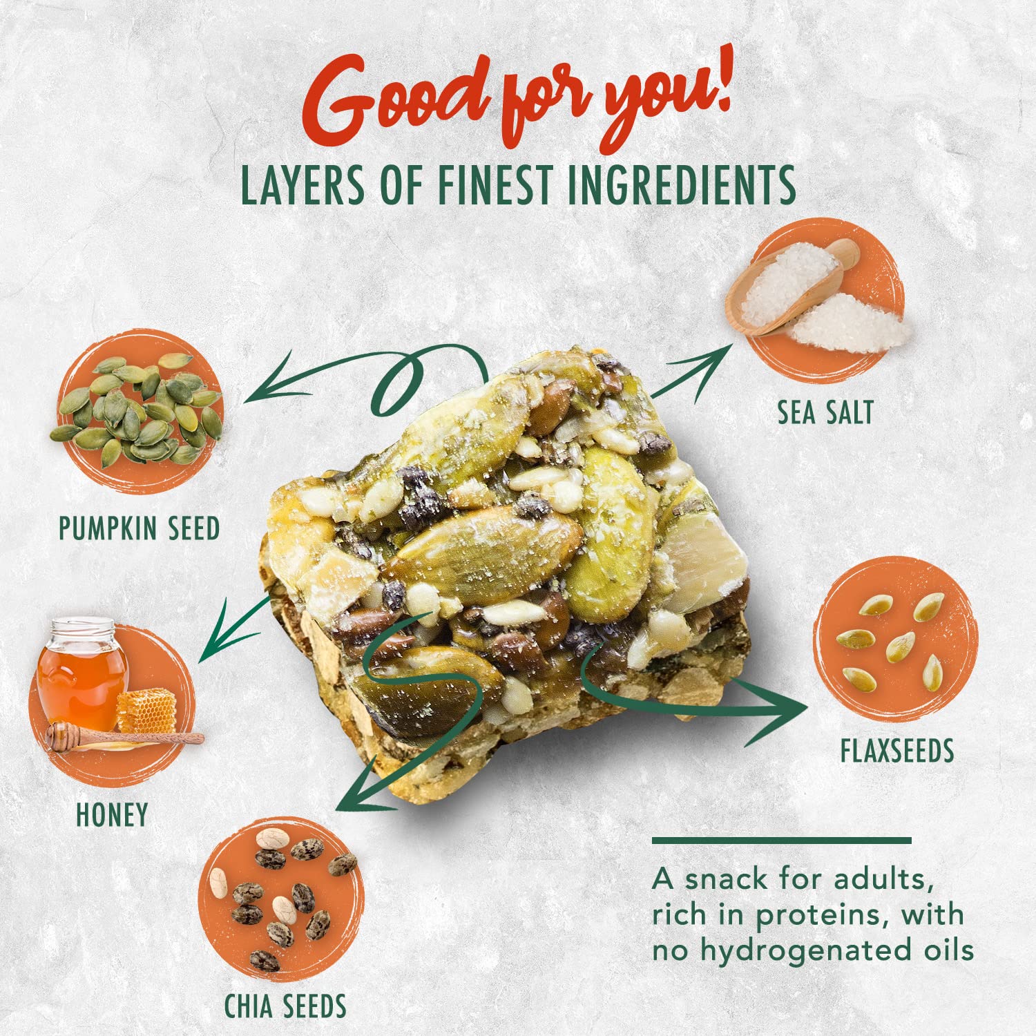 Q: What are the main ingredients in Melissa's Clean Snax?A: Melissa's Clean Snax are made with all-natural ingredients including gluten-free chia seeds, flaxseeds, honey, and sea salt, providing a healthy and tasty snack option.