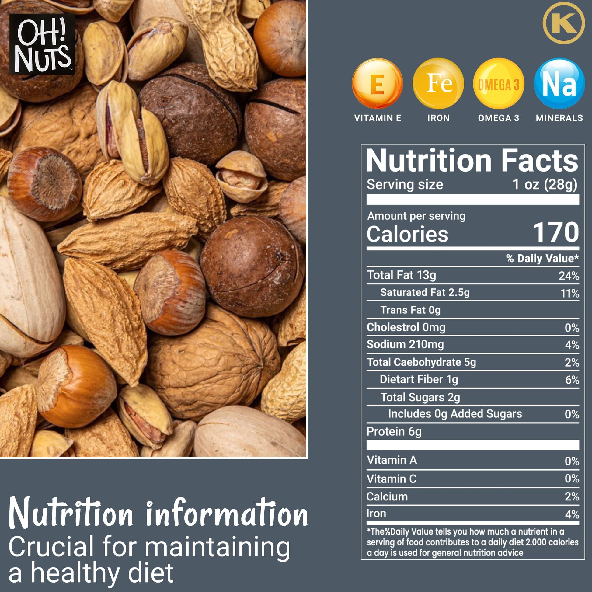 • Q: Are these mixed nuts suitable for special diets like keto or paleo? A: Yes, the Oh! Nuts Mixed Nuts in Shell are suitable for various dietary preferences, including paleo and keto. They are low in carbs, gluten-free, and packed with protein and healthy omega oils, making them a great option for healthy snacking.