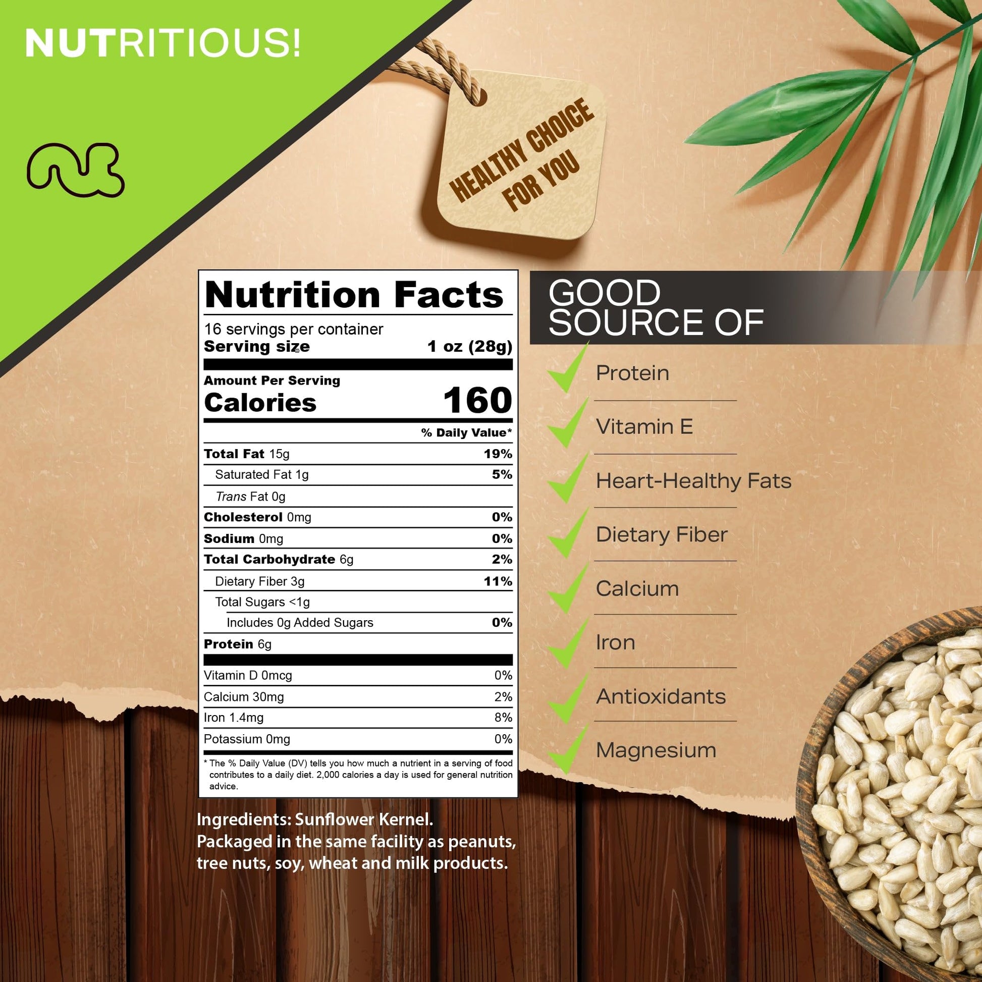Nut Cravings - Raw Sunflower Seeds Kernels To Eat, Unsalted, Shelled Hulled, (16Oz - 1 Lb) Bulk Nuts Packed Fresh In Resealable