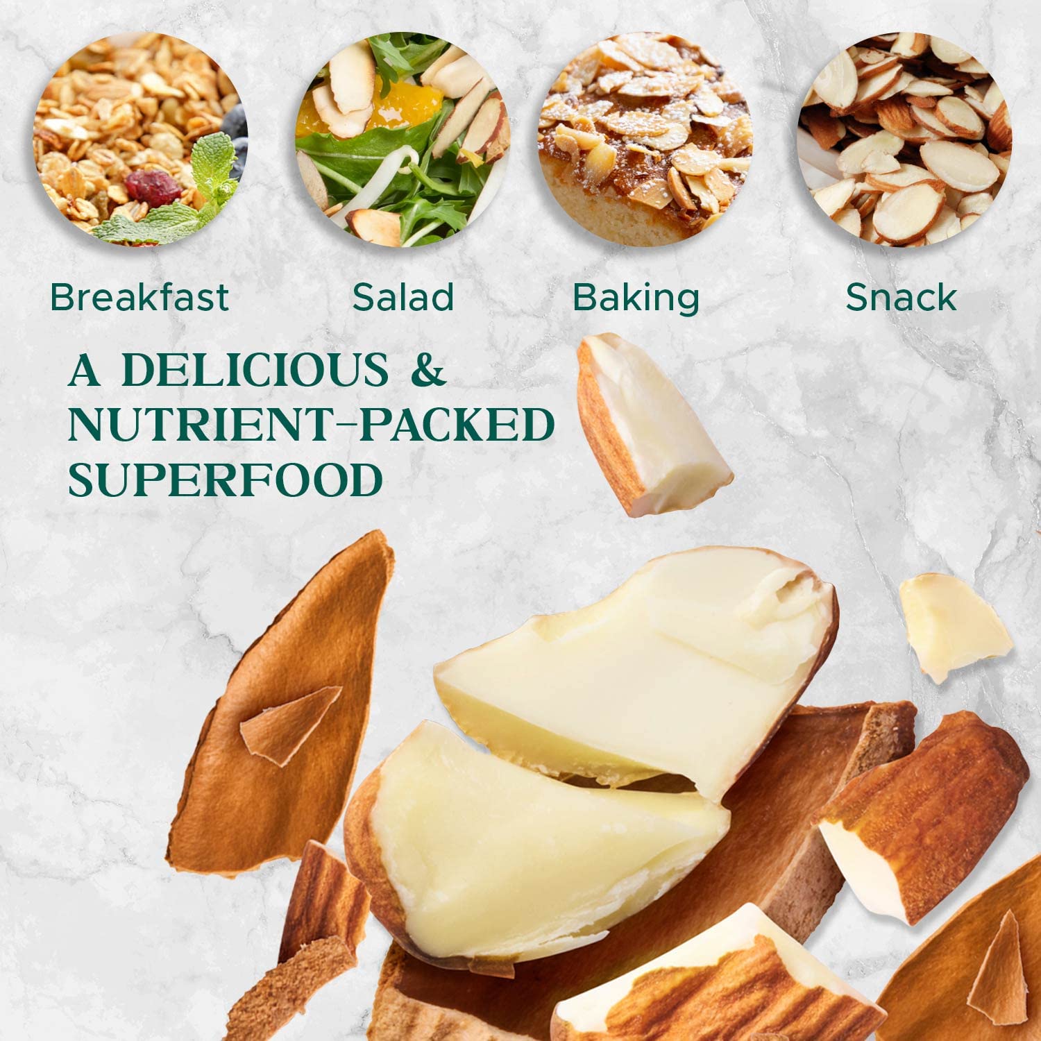 Q: What are the nutritional benefits of these almonds?A: These sliced almonds are a nutrient-packed superfood, rich in protein, fiber, vitamins E, B & K, as well as essential minerals like calcium, copper, iron, and magnesium, making them a healthy addition to your diet.