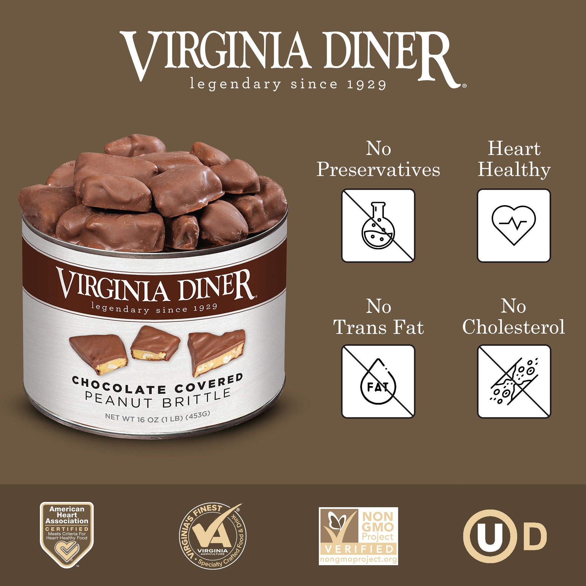 - Q: What makes Virginia Diner's peanut brittle unique? A: Virginia Diner's peanut brittle stands out due to its premium quality, achieved through a unique blister roasting process that results in perfectly cooked peanuts. The combination of a buttery flavor profile and a velvety coat of rich, creamy milk chocolate enhances its distinctive crunch.
