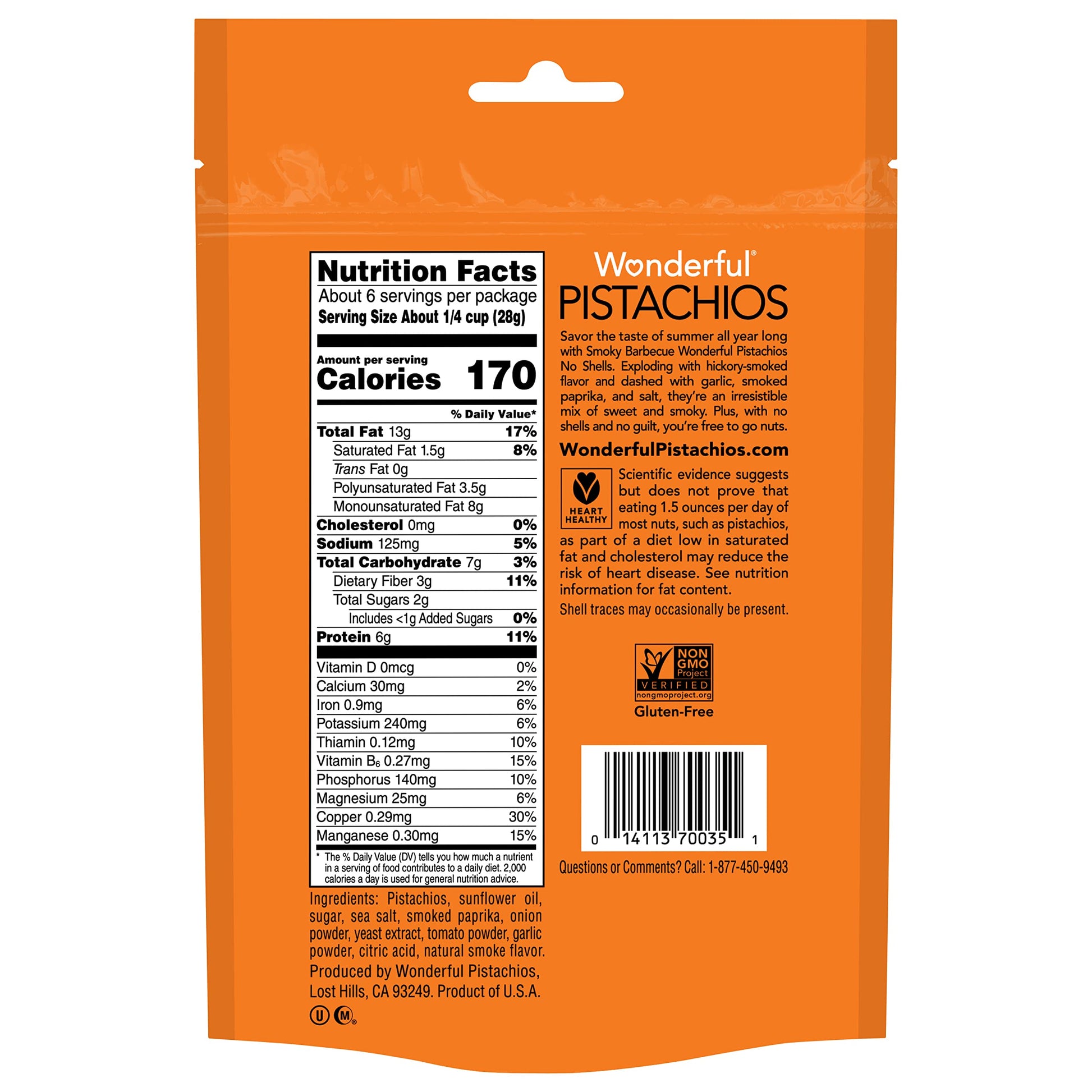 - Q: What makes Wonderful Pistachios No Shells a good on-the-go snack? A: Wonderful Pistachios No Shells come in a convenient 5.5-ounce re-sealable bag, making them easy to carry and perfect for snacking anytime, whether you're at the office, traveling, or enjoying a picnic.