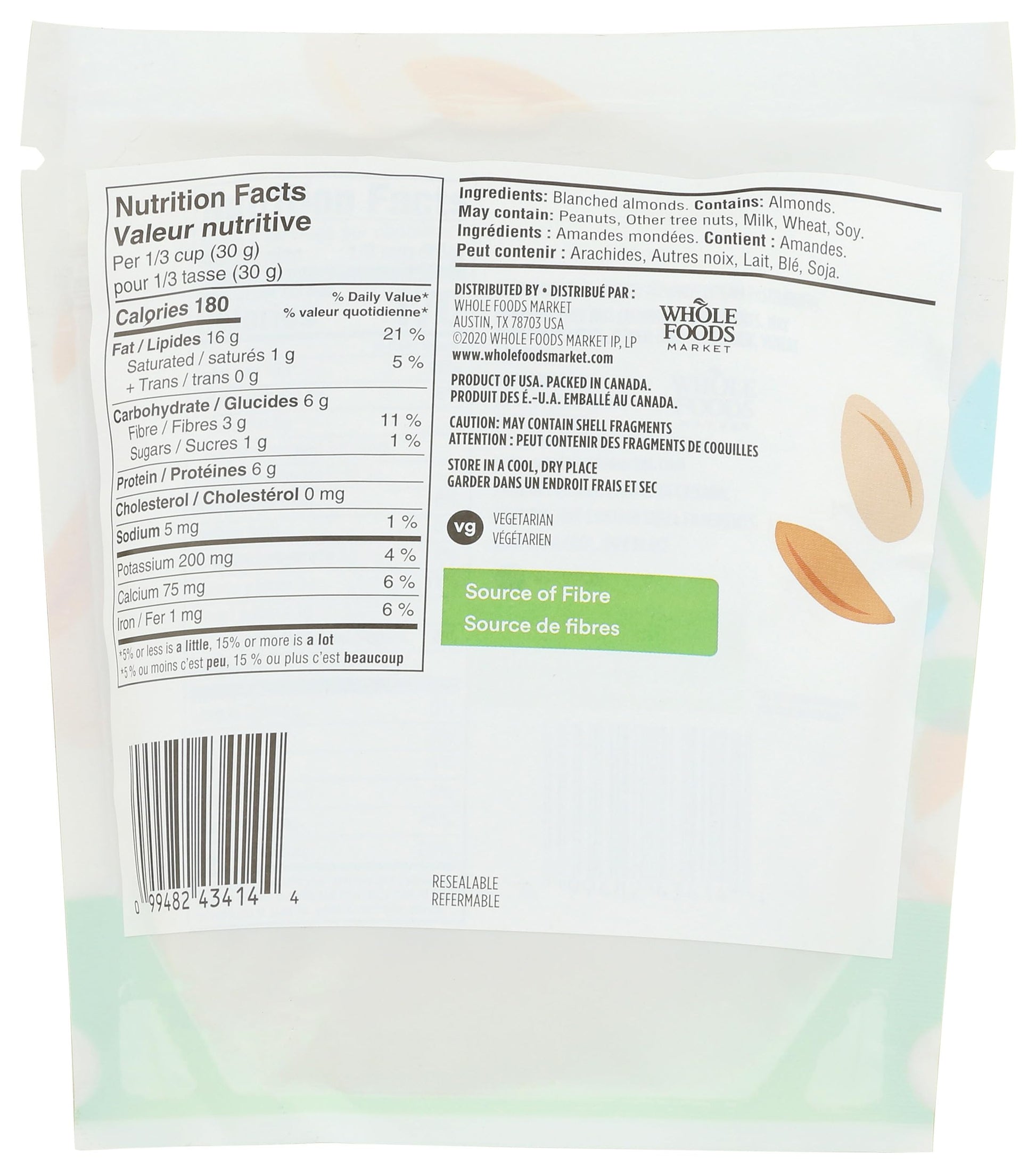 Q: What quality standards do 365 by Whole Foods Market products meet?A: 365 by Whole Foods Market products, including these almonds, meet rigorous quality standards, which prohibit over 100 ingredients for both food and supplements. This commitment ensures you receive high-quality, safe products.