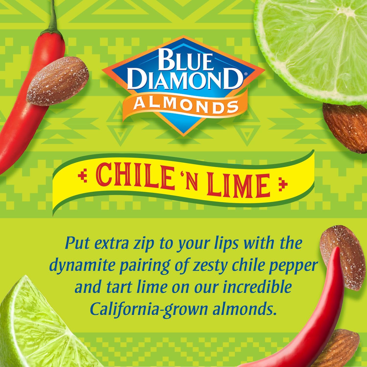 Q: What are Blue Diamond Chile N Lime Almonds?A: Blue Diamond Chile N Lime Almonds are flavored almonds that combine a zesty kick of chile with a hint of lime, making them a delicious and invigorating snack option.