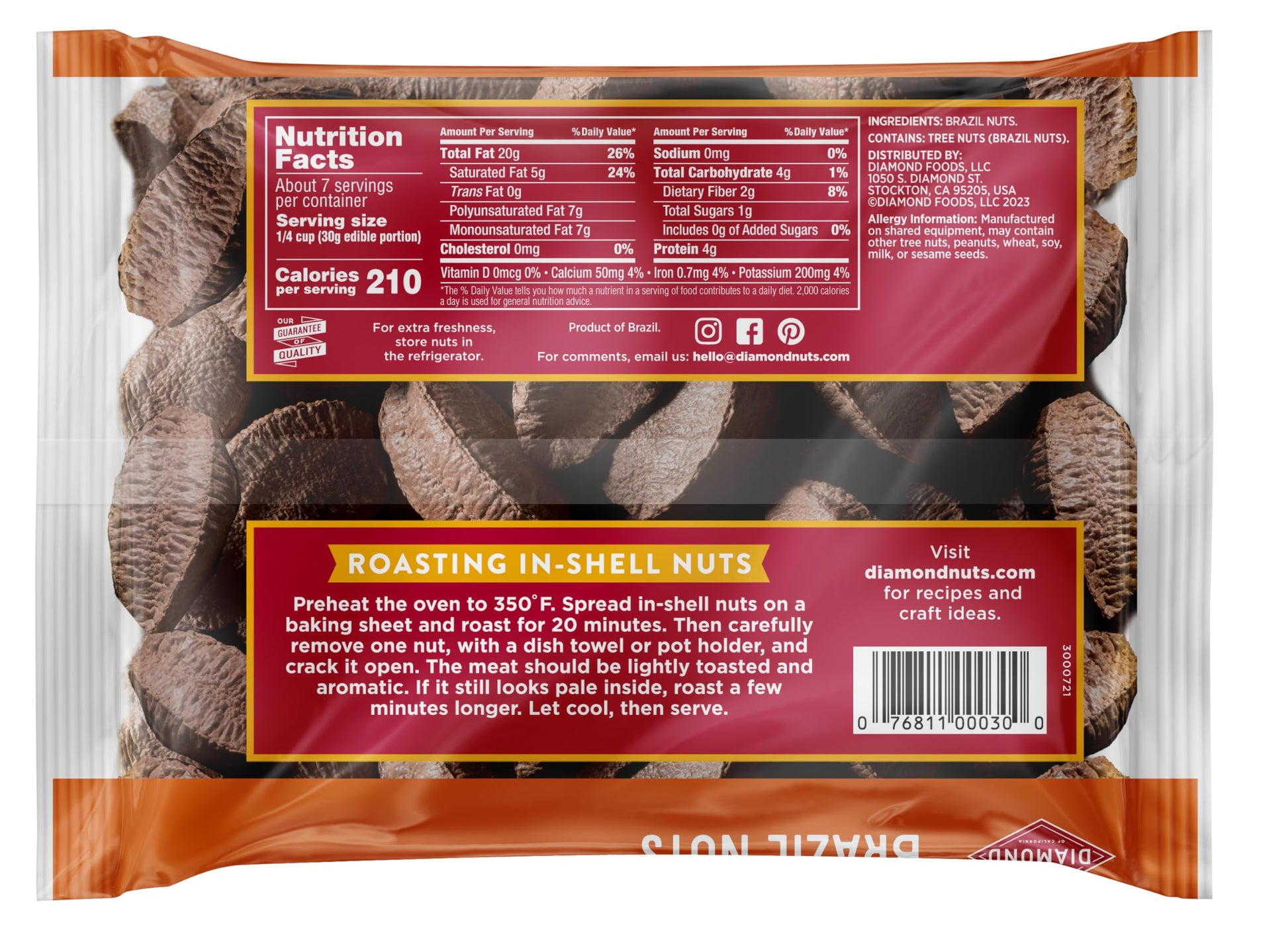 - Q: What are the health benefits of Diamond of California's Brazil Nuts in Shell? A: Diamond of California's Brazil Nuts in Shell are a rich source of essential minerals such as selenium, magnesium, and healthy fats. They are gluten-free, cholesterol-free, and perfect for health-conscious snackers looking for nutrient-dense options.