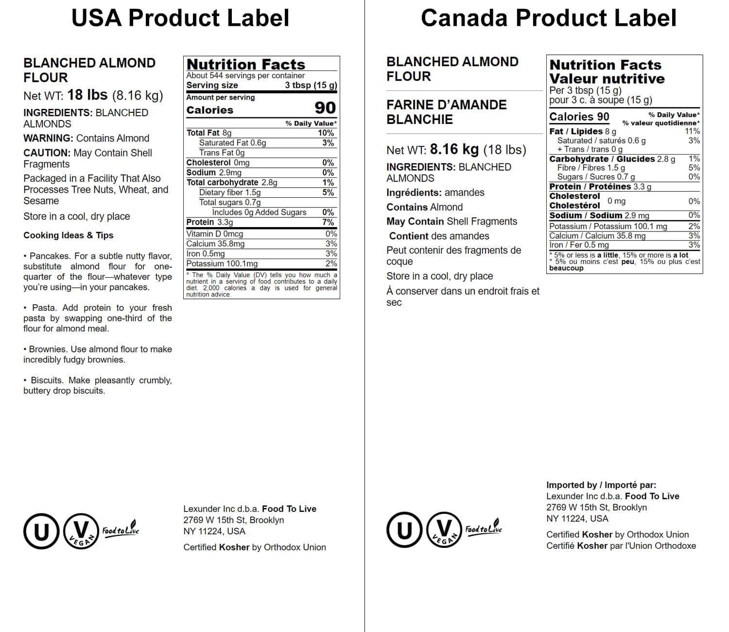 Q: Is there any risk of allergens with blanched almond flour?A: Yes, blanched almond flour is produced in a facility that processes tree nuts and wheat, so it may pose a risk to individuals with nut allergies. Always check the packaging for allergen warnings.