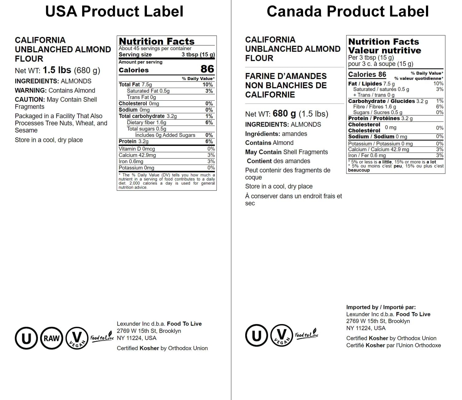 - Q: Is this almond flour certified kosher and vegan? A: Yes, Food to Live California Unblanched Almond Flour is certified kosher and vegan. It contains no additives, making it a pure and natural choice for those following these dietary preferences.