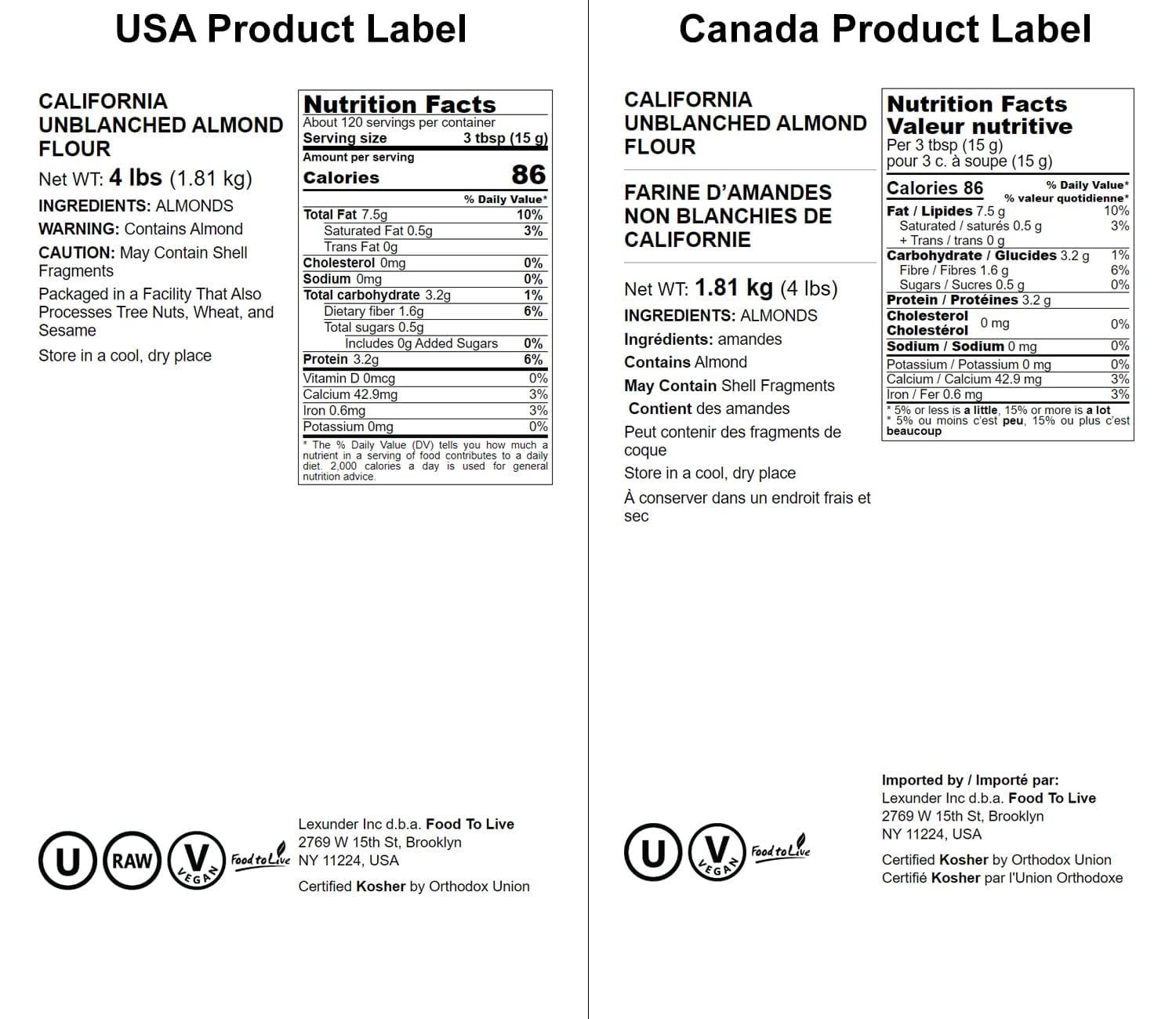 - Q: Is Food to Live California Unblanched Almond Flour suitable for keto and paleo diets? A: Absolutely! Food to Live California Unblanched Almond Flour is raw, vegan, kosher, and contains no additives, making it a perfect fit for both keto and paleo diets. It is low in carbohydrates and high in healthy fats, protein, and fiber.
