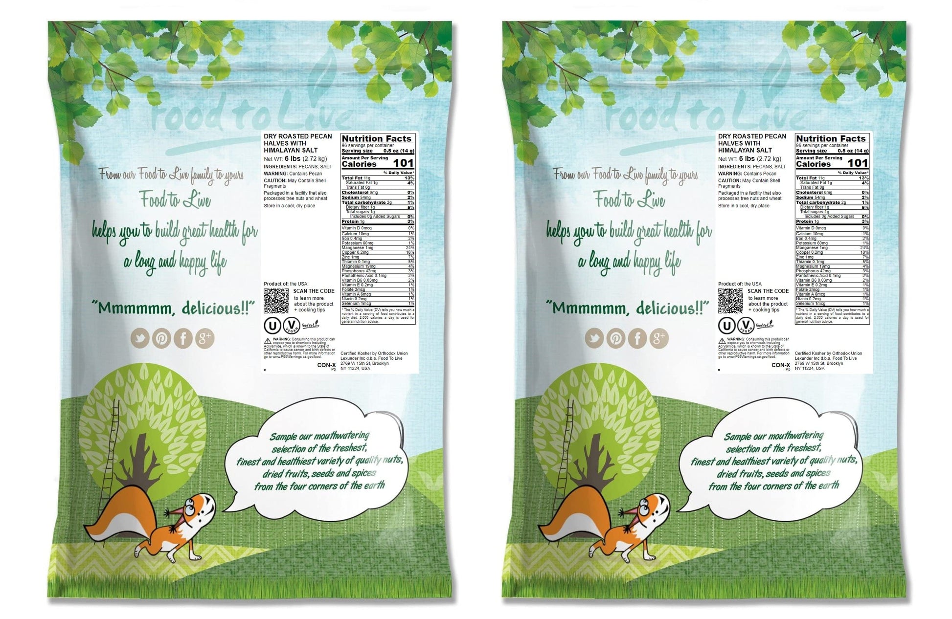 Q: What is the packaging size of the Food to Live Dry Roasted Pecan Halves?A: The Food to Live Dry Roasted Pecan Halves are available in a 12-pound package, providing ample quantity for snacking or incorporating into various recipes.