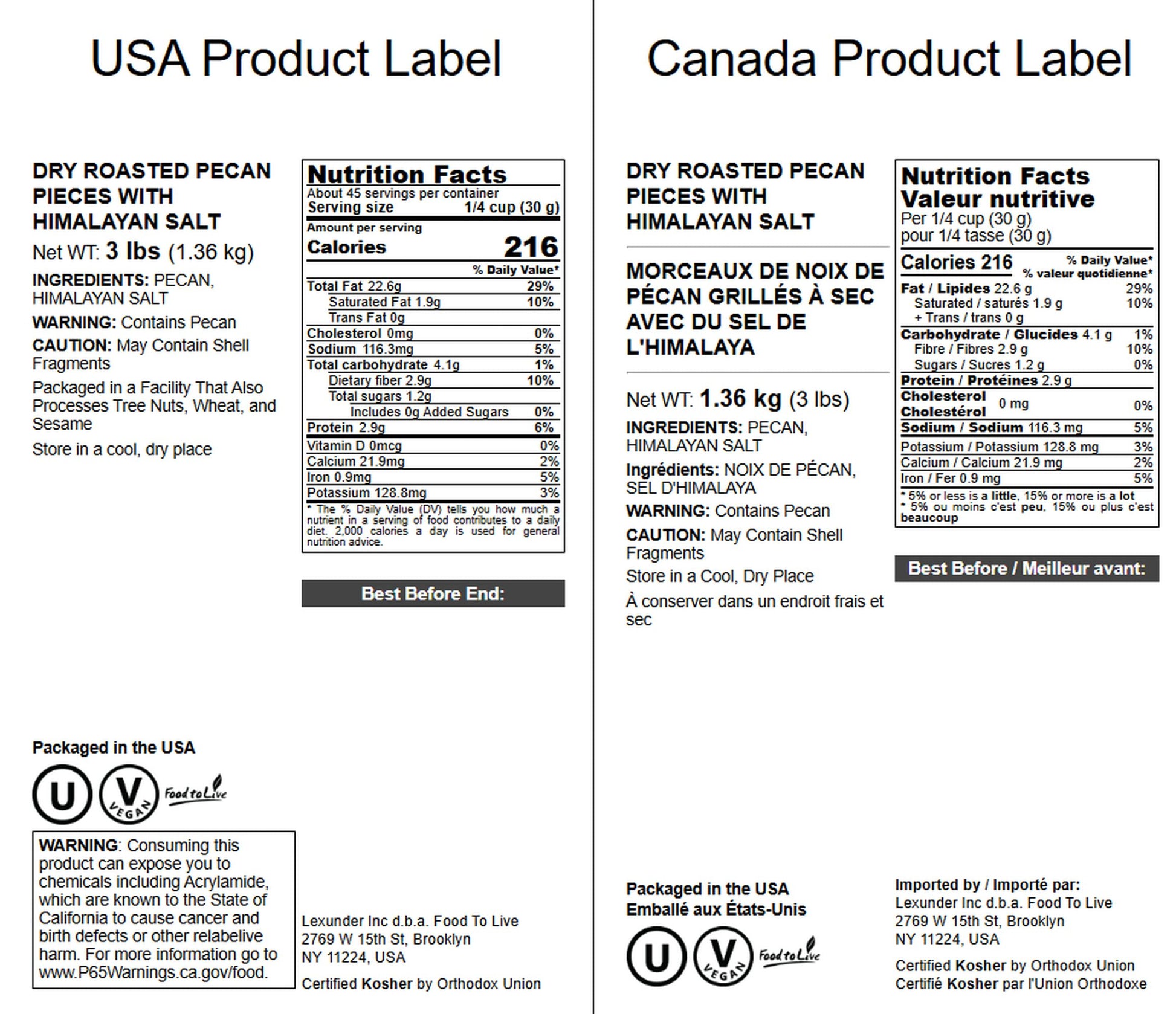- Q: Are these pecan pieces suitable for vegan and kosher diets? A: Yes, Food to Live Dry Roasted Pecan Pieces are both vegan and kosher, making them a suitable snack and ingredient for those following these dietary restrictions.