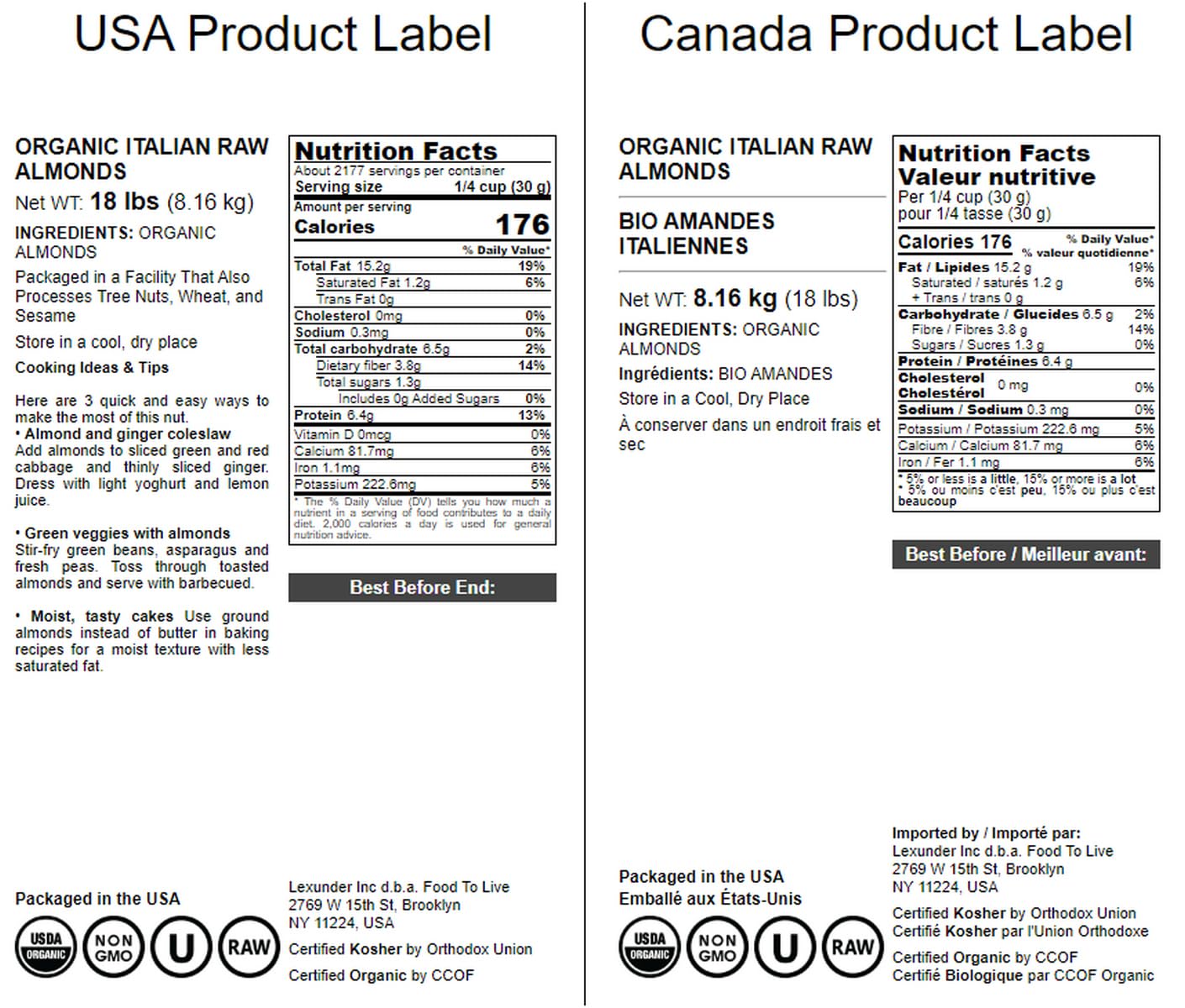 Truly Raw And Unpasteurized, Food To Live Certified Organic Almonds Are Large, Evenly Shaped, And Delicious. | Non-Gmo, Gluten-Free, And Vegan-Friendly Almonds That Make A Great Tasty Snack. | Eat Them Raw Or Roasted, Make Almond Milk, Meal, Or Butter. Everything Tastes Better With Almonds. | Food To Live Certified Organic Almonds Are Unsalted, So You Can Roast And Flavor Them To Your Taste. | Packed In A Quality Resealable Bag That Will Help You Keep The Almonds Fresh For Months.