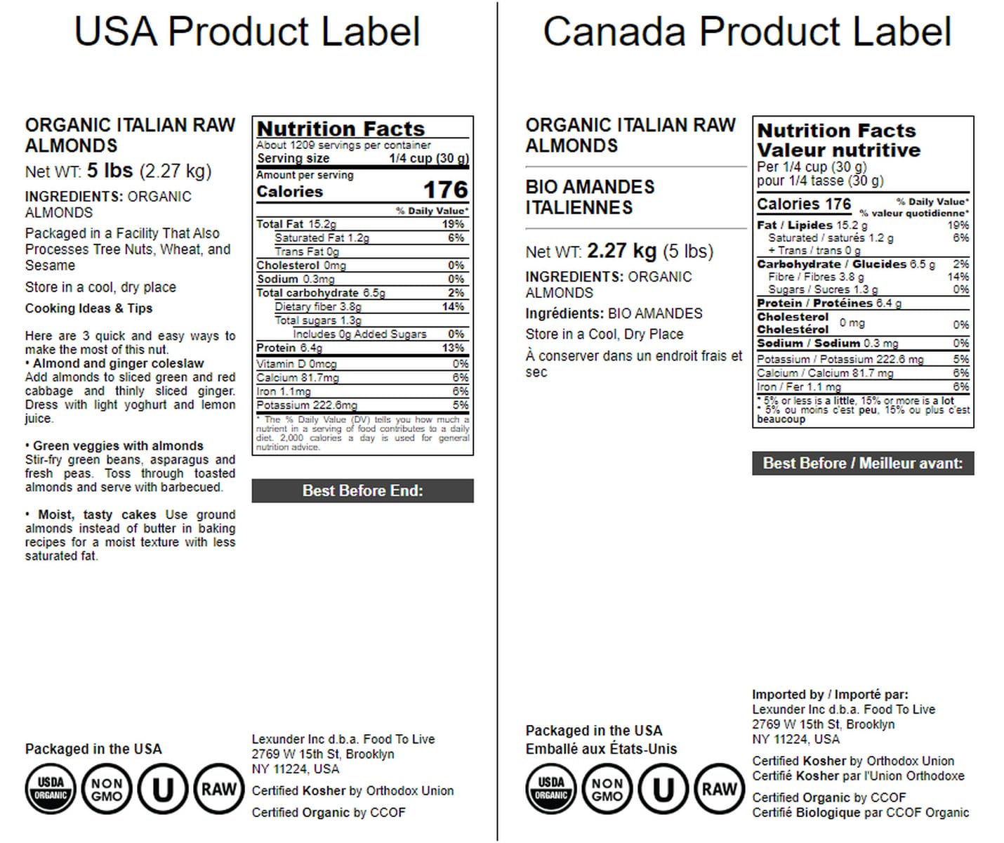 Almonds Have Been Revered As One Of The Most Delicious Foods For Hundreds Of Years. They Are Used In Many National Cuisines And Offer A Great Energy Boost If Eaten As A Snack. Food To Live Organic Almonds Offer All The Health Benefits Of Unpasteurized Almonds. Nutritional Value Organic Almonds Are Exceptionally Rich In Nutrients. They Contain Large Amounts Of: - Vitamin E - Riboflavin - Copper - Phosphorus - Magnesium - Manganese Directions Store Food To Live Organic Almonds In A Cool And Dark Place, And They Will Remain Fresh And Delicious For Months. Almonds Can Be Added To A Variety Of Dishes, Especially To Confections And Desserts. You Can Enjoy Raw Nuts As A Fast Snack Or Turn Them Into Delicious Butter. You Can Even Add Them To Smoothies And Homemade Protein Shakes. This Product Is Processed In A Facility That Also Processes Wheat.