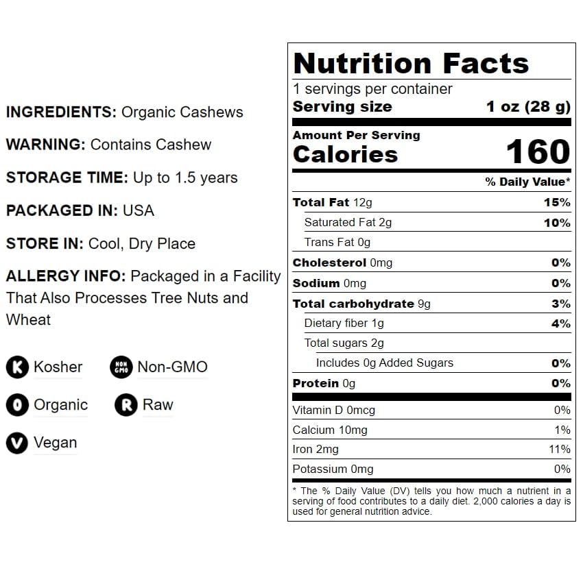 - Q: Can I use Organic Cashew Flour as a gluten-free substitute in baking? A: Yes, Organic Cashew Flour is gluten-free, making it an excellent substitute for other flours in baking. You can replace up to ¼ of the other flour in your recipe with cashew flour to enhance the flavor and texture of your baked goods.