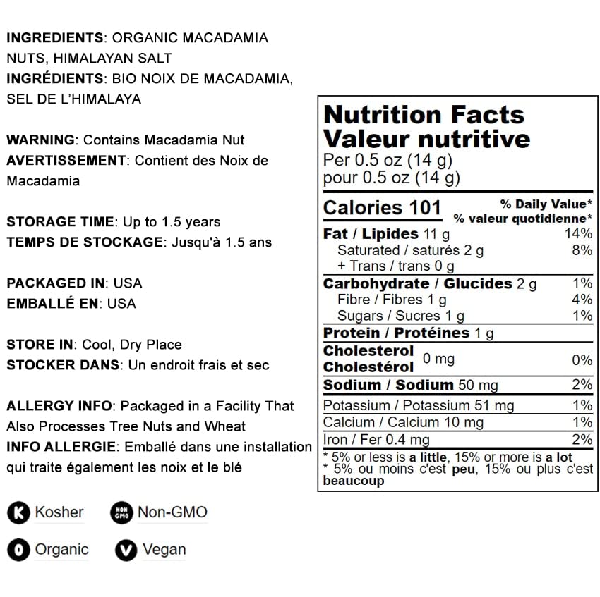 Whether You'Re Seeking A Delicious Snack, A Nutritious Addition To Your Recipes, Or A Thoughtful Gift For Your Loved Ones, These Organic Macadamia Nuts By Food To Live Are A Perfect Choice. They Are Carefully Dry Roasted In An Oven In Small Batches And Are Slightly Coated With Himalayan Pink Salt. These Macadamia Nuts Are Organic, Non-Gmo, Vegan, Keto, Paleo Diets-Friendly, And Have No Oil Added. Benefits Of Organic Roasted Nuts With Himalayan Salt Hesitate To Buy Roasted Nuts Because You Think They Are Less Nutritious Than Raw Actually, If You Take A Look At The Nutritional Value Of Raw And Organic Roasted Macadamia Nuts With Salt, You Will See That The Numbers Are Almost The Same. Yes, The Sodium Content Of The First Ones Will Be Higher Due To Himalayan Pink Salt Being Added, But Other Values Are Pretty Much The Same. Organic Dry Roasted Whole Macadamia Nuts Are Packed With Flavonoids - Powerful Antioxidants, Plant Protein, Fiber, Monounsaturated Aka Good Fats, Vitamins E, B1, B6, And Various Minerals Including Manganese, Copper, Magnesium, Selenium, And Iron. These Nuts Are An Amazing Addition To Vegan, Kosher, And Paleo Diets. Versatile Uses Of Organic Roasted And Salted Macadamia Nuts Our Organic Dry Roasted Whole Macadamia Nuts With Himalayan Salt Have A Perfectly Balanced Buttery Flavor With A Savory Note And Crunchy Bite. Munch On These Nuts While Watching Tv, On A Hike, Road Trip, Or At Work. Besides, Roasted And Salted Macadamia Nuts Go Well With Cheese And Meats, Therefore, Will Be A Great Compliment To The Charcuterie Board. In Addition, These Nuts Are A Wonderful Nutritional Booster For Oatmeal, Granola, Stir Fries, And Salads. Moreover, Use Chopped Macadamia Nuts When Making Desserts, Candies, Energy Treats, Or Baking Breads, Cookies, And Muffins. Storage Tips Store These Nuts In A Moisture-Proof Container In A Cool Dry Place. If You Opt For Our Budget-Friendly Organic Roasted And Salted Macadamia