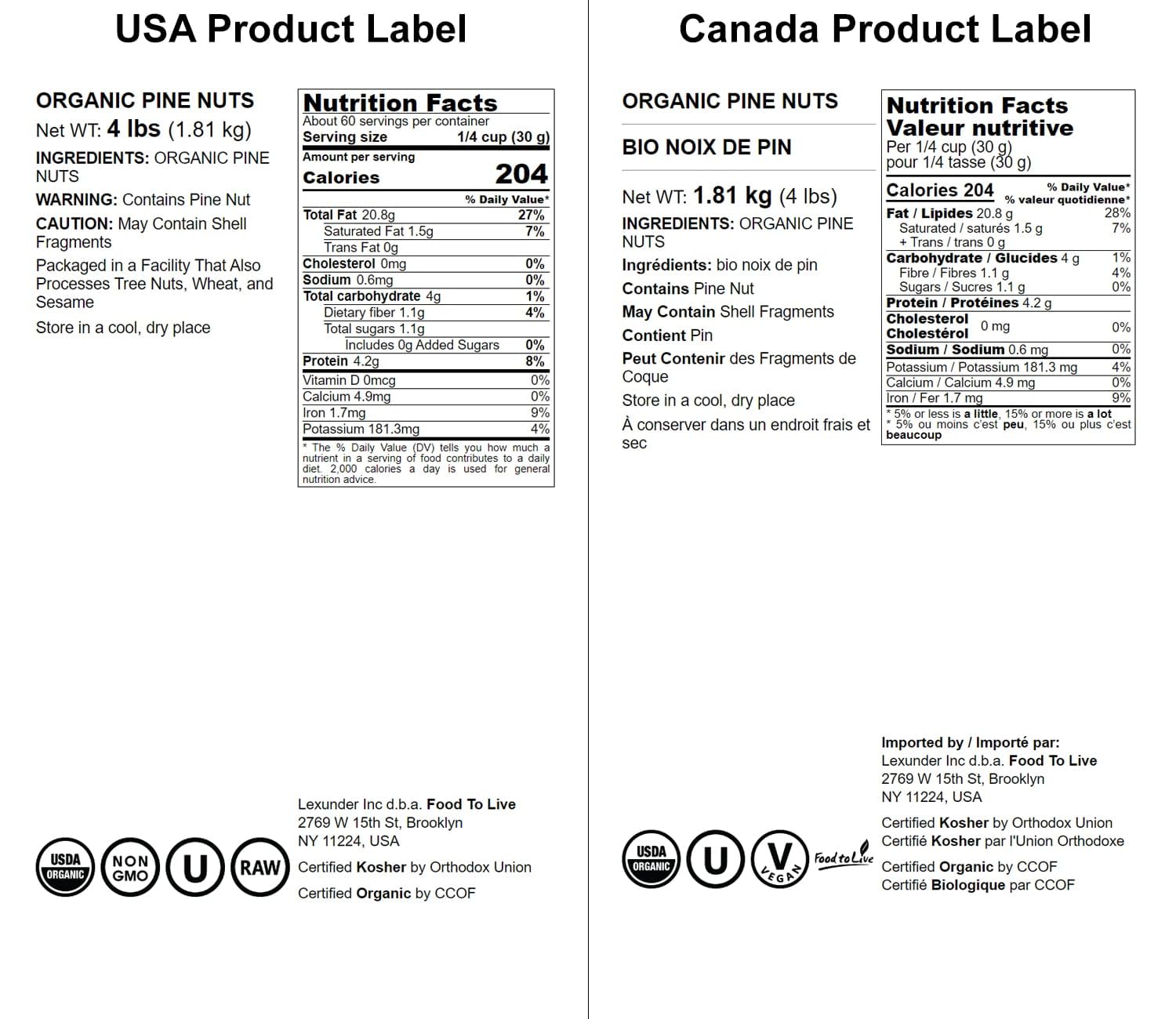 Organic & Non-Gmo: Food To Live Organic Pine Nuts Are Usda Organic And Non-Gmo. They