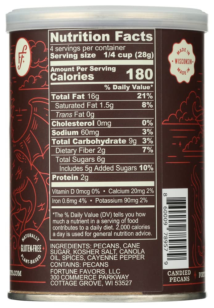 Q: Can I use Fortune Favors Candied Pecans in recipes?A: Absolutely! These candied pecans can add a unique twist to various dishes. They can be sprinkled on salads, used in baking, or enjoyed as a topping for desserts, providing a delightful sweet and spicy flavor.