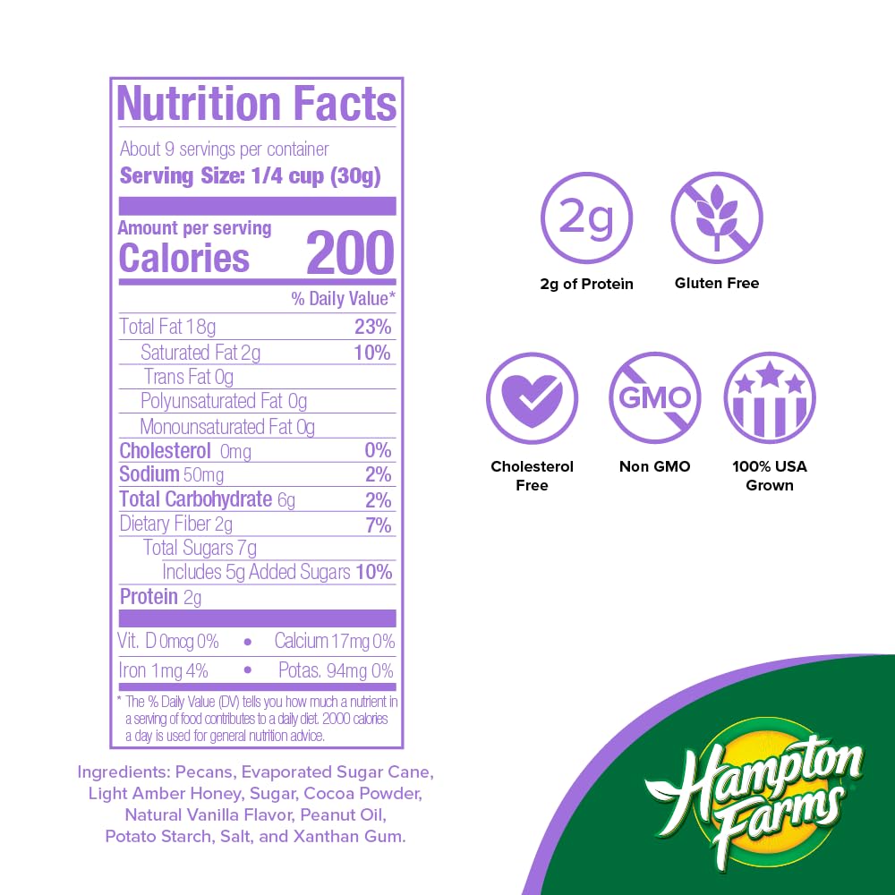 Q: How should I store Hampton Farms honey roasted pecans?A: To maintain freshness, store the honey roasted pecans in a cool, dry place. Once opened, it's best to keep them in an airtight container to prevent them from becoming stale.