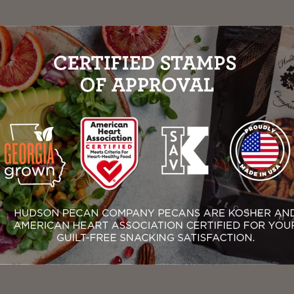 - Q: What certifications do these pecans have? A: These pecans are both Kosher certified and have the American Heart Association certification, ensuring they meet high standards for quality and health. This makes them a guilt-free snack option for health-conscious consumers.