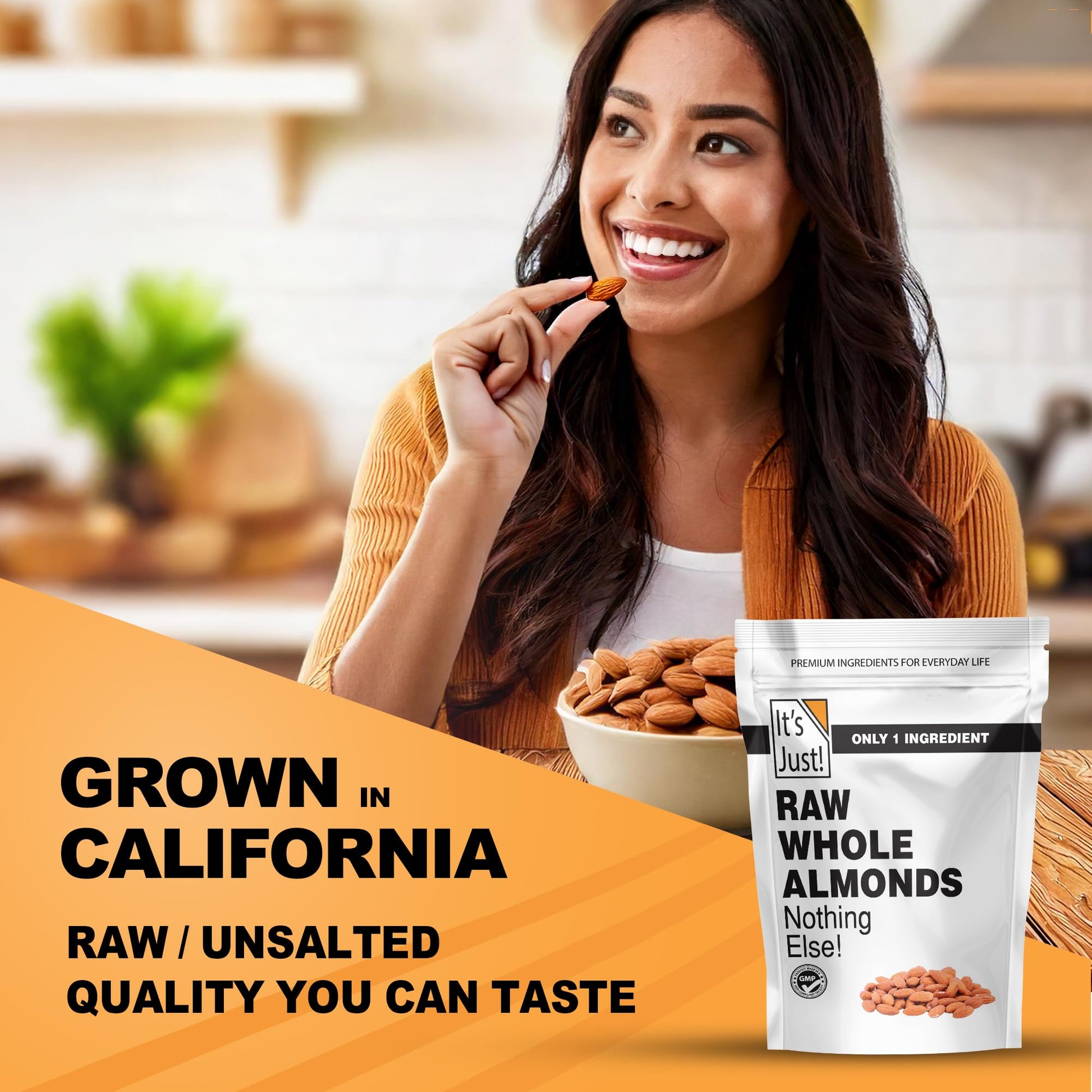 It'S Just - Raw Whole Almonds, Grown In California, 32Oz (2Lbs), Unsalted, Premium Quality, Supreme Grade, Naturally Semi Sweet, Made In Usa