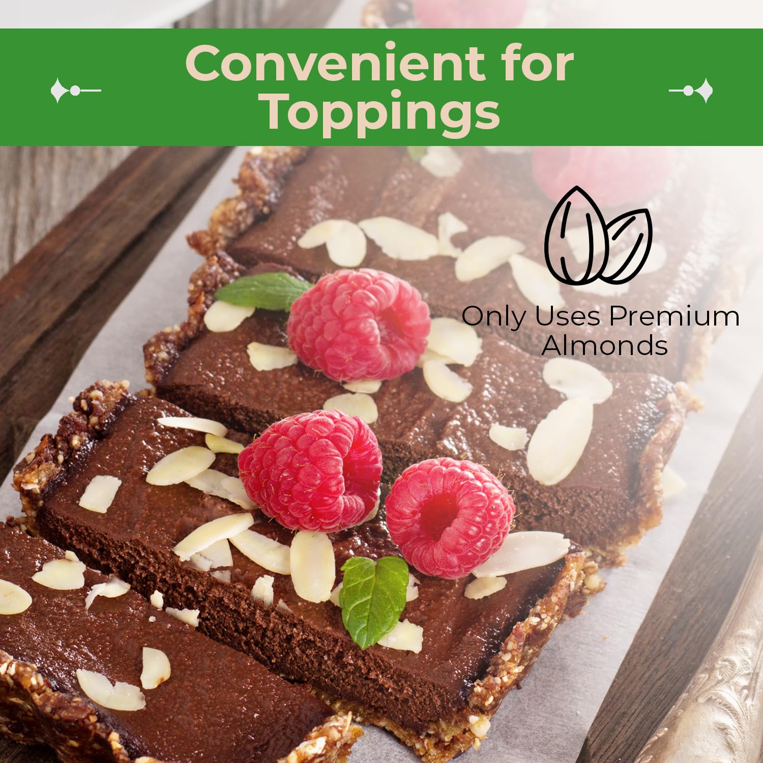 Brace Yourself For A Slice Of Heaven Top Chef! Its No Secret, Almonds Are Incredibly Delish! They Make Your Pastries Stand Out, They Create Medal-Worthy Salads And Can Make A Dessert Elicit Tears Of Pure Joy. And Since Ours Are Already Blanched And Sliced, You Can Skip All The Arduous Peeling Work And Hop Right On To Weeping In Total Scrumptiousness. Health 101! These Blanched Sliced Almonds Raw Are About To School You! They Know The Harmful Effects Of Free Radicals In Your Body, And Thats Why They Contain Powerful Antioxidants. They Know The Drawbacks Of Mineral Deficiency, And Thats Why They Come Packed With Copper, Magnesium And Phosphorous. They Know The Potentially Negative Results Of Gluten, And Thats Why Theyre Not About That Life! Sincerely Nuts Blanched Sliced Almonds Benefits Include: - Seriously Scrumptious Taste. - Blanched And Sliced For Convenience. - Healthy Minerals And Vitamins. - 100% Kosher Certified. - Generous Proportions To Give You Unmatched Value For Money. Are You Ready To Have Your Taste Buds Erupting In Joyous Song Then Click 'Add To Cart Now!