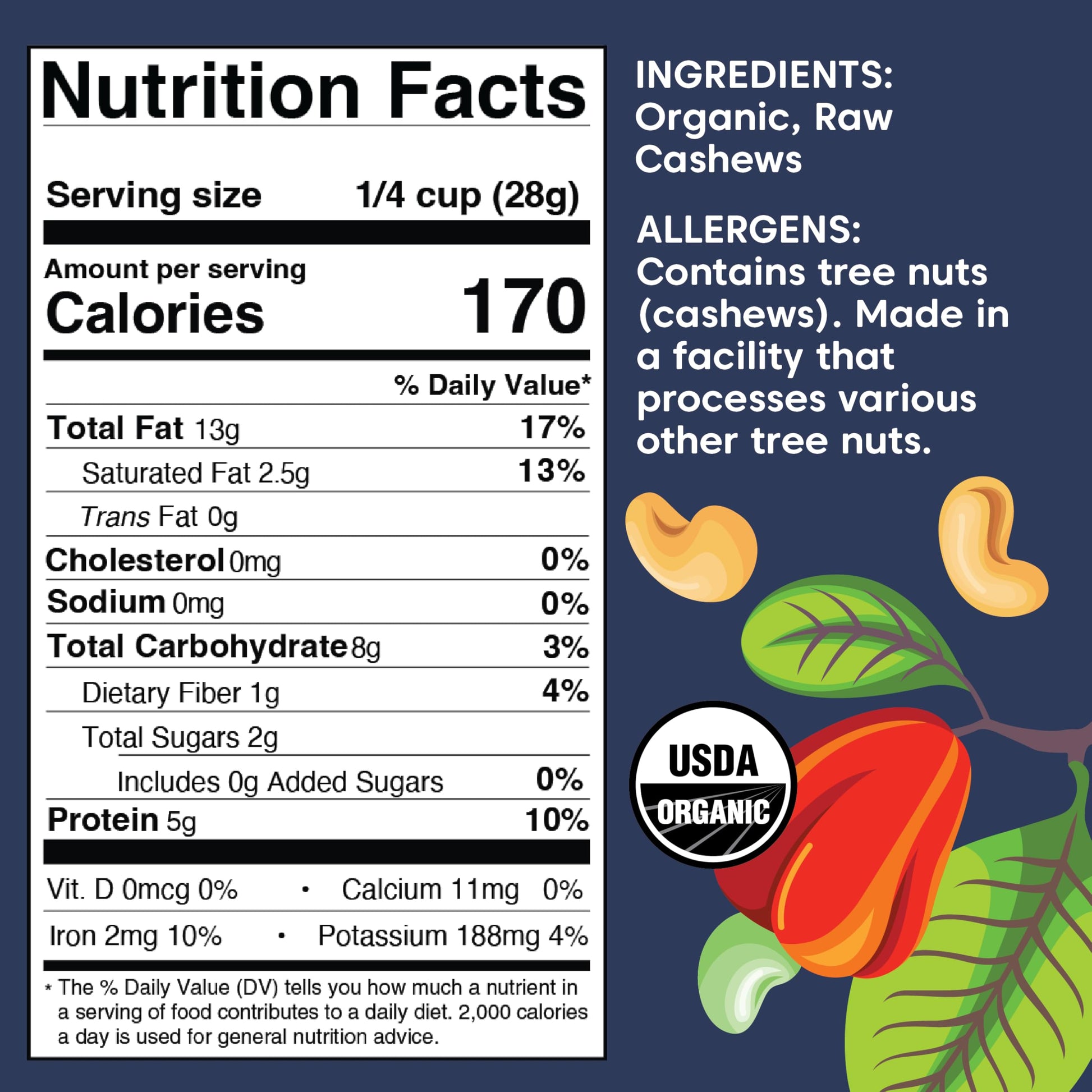 Wilderness Poets Cashews Are Heavenly Sweet And Creamy. From The Beautiful Tropical Evergreen Tree, Native To Brazil, Cashews Provide Essential Fatty Acids, B Vitamins, Fiber, Protein, Potassium, And Iron. While They Are Deeply Satisfying Alone, Their Versatility As An Ingredient Is Unsurpassed By Any Other Nut. Use Them To Make Sauces, Dips, Raw Desserts, Or Munch On Them By The Handful. No Salt No Sugar No Soy Gluten Free Non-Gmo No Trans Fat No Cholesterol No Preservatives No Pesticides Raw Vegan