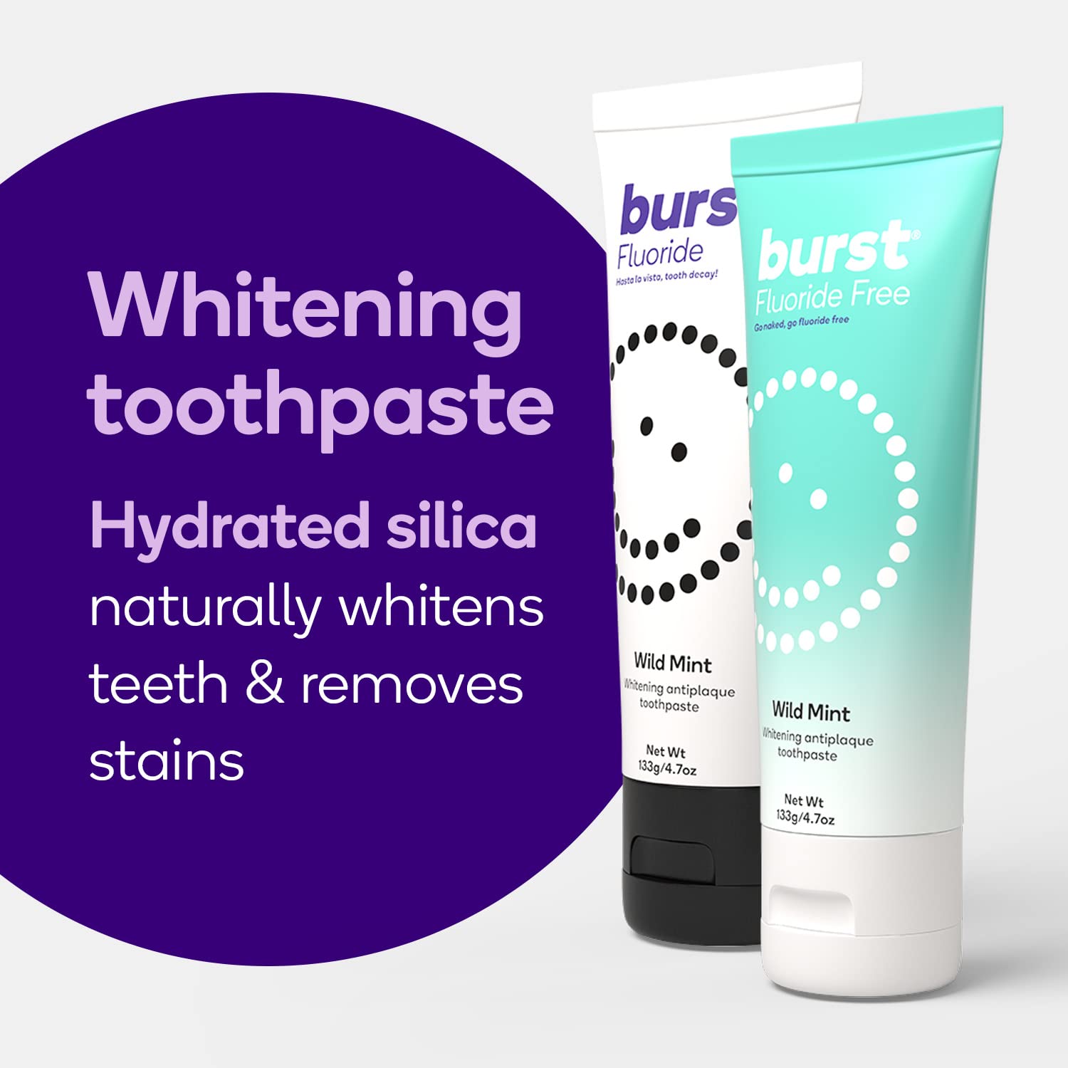 - Q: What are the key benefits of using BURST Whitening Toothpaste? A: BURST Whitening Toothpaste offers several benefits including effective cavity fighting with fluoride, natural teeth whitening using hydrated silica, and a refreshing wild mint flavor. It’s designed for sensitive teeth, minimizing sensitivity thanks to its low RDA score, and contains clean, vegan, gluten-free ingredients without harmful additives like SLS or triclosan.