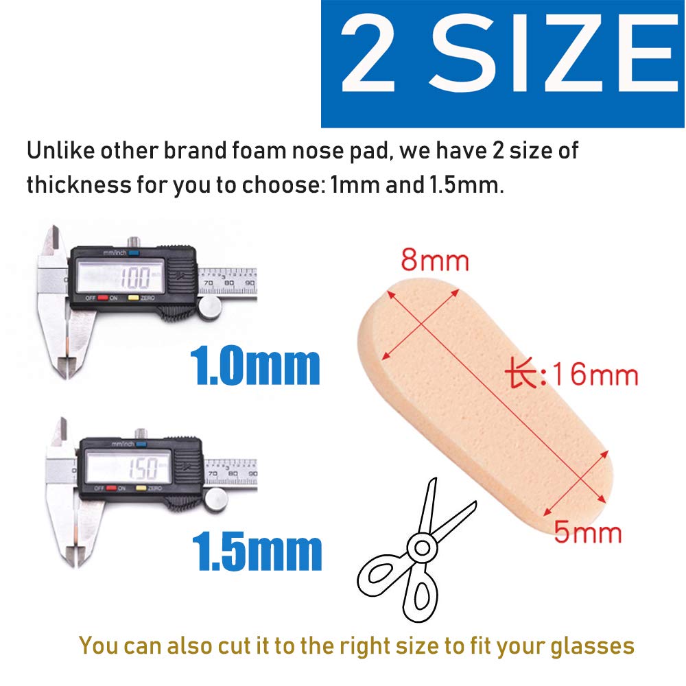- Q: How thick are the nose pads? A: The nose pads come in two thickness options: one millimeter and one point five millimeters. You can choose the thickness that best suits your comfort needs.