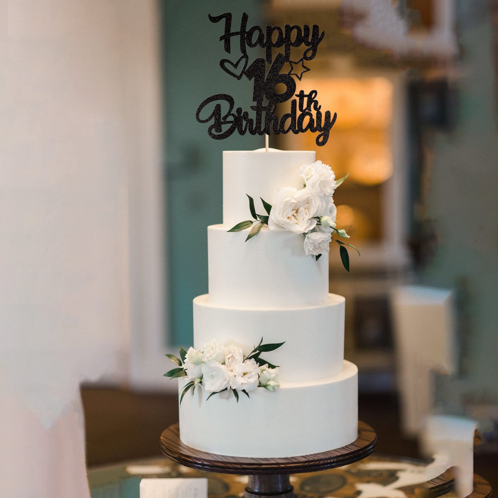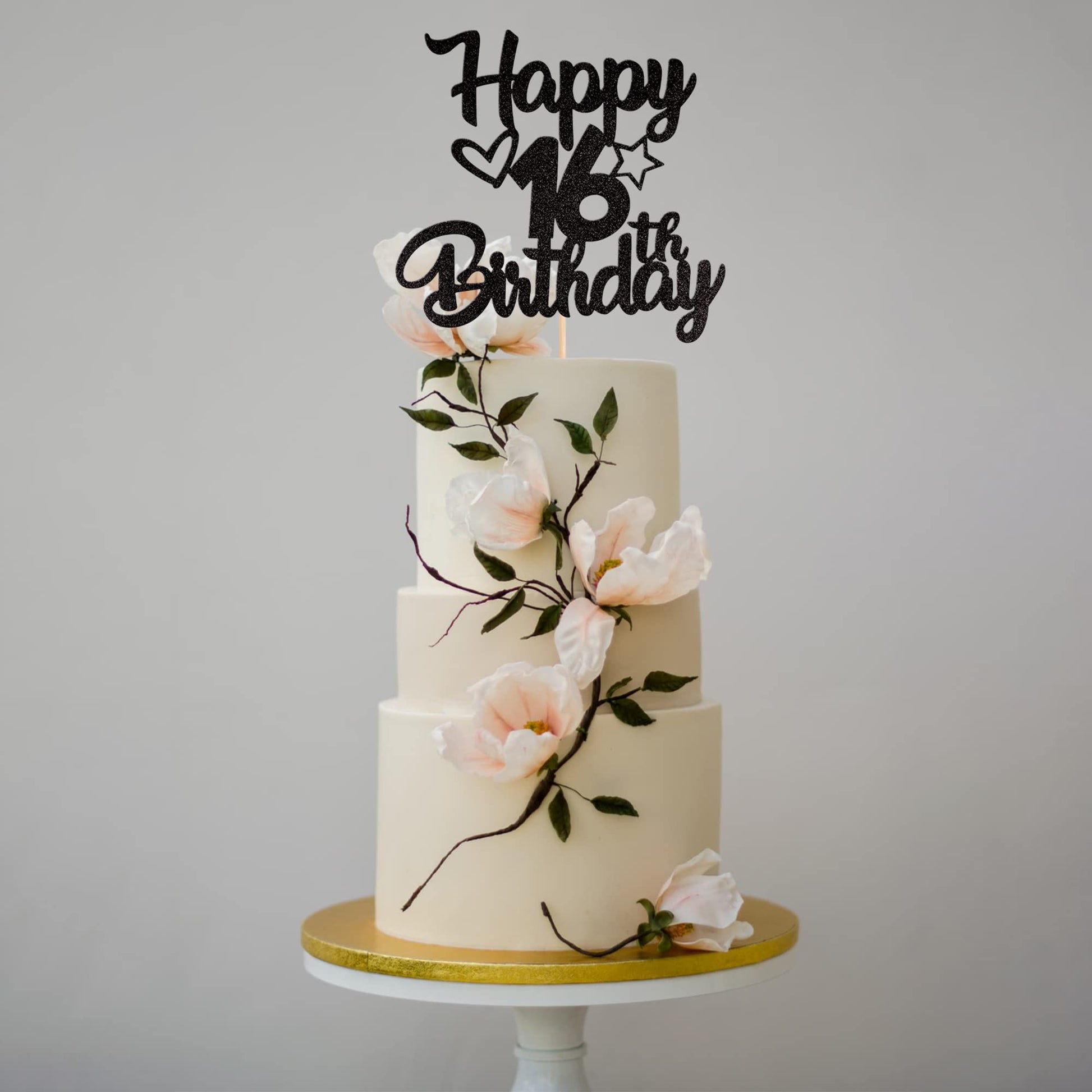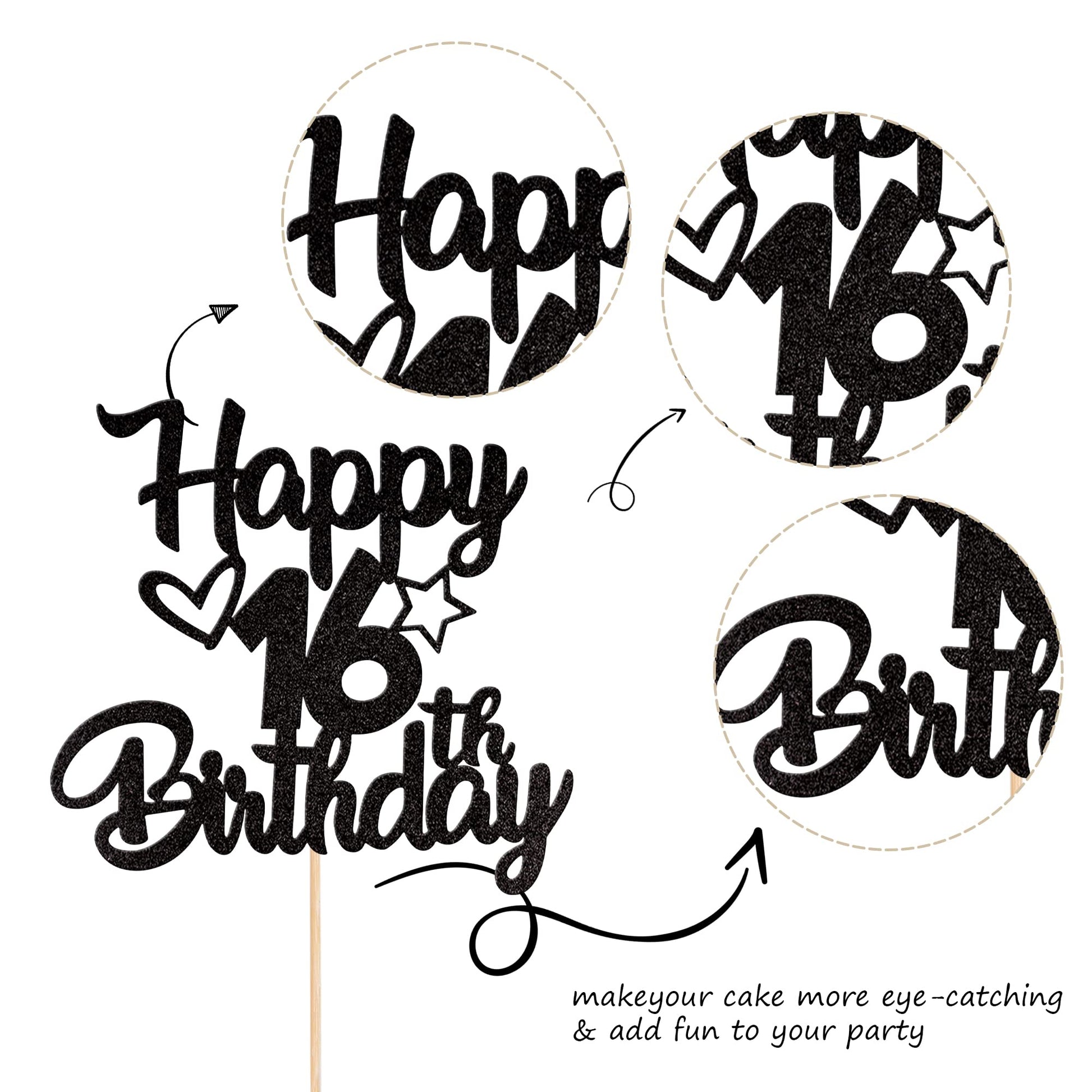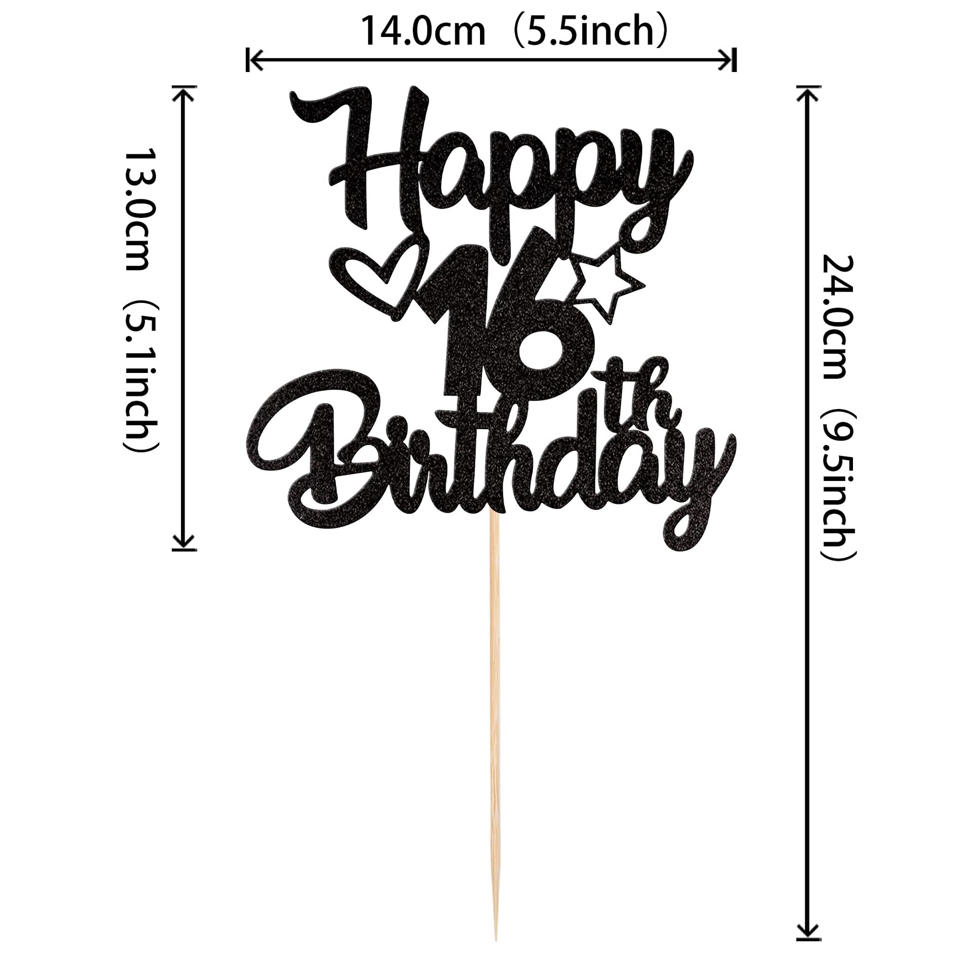 Q: What materials are used in the Happy 16th Birthday Cake Topper?A: The cake topper is made of high-quality single-sided glitter thick card stock, ensuring durability and a sparkling effect for your celebration.